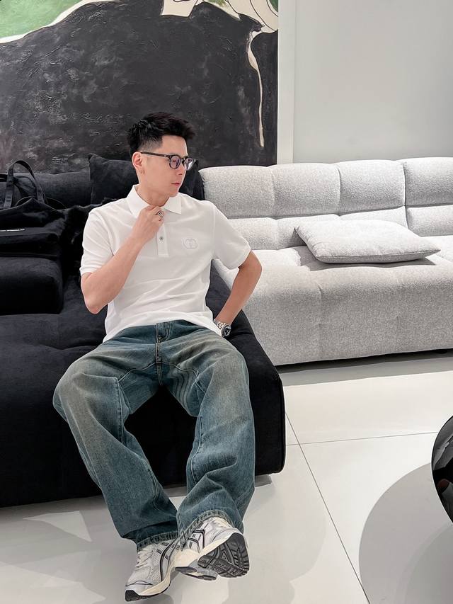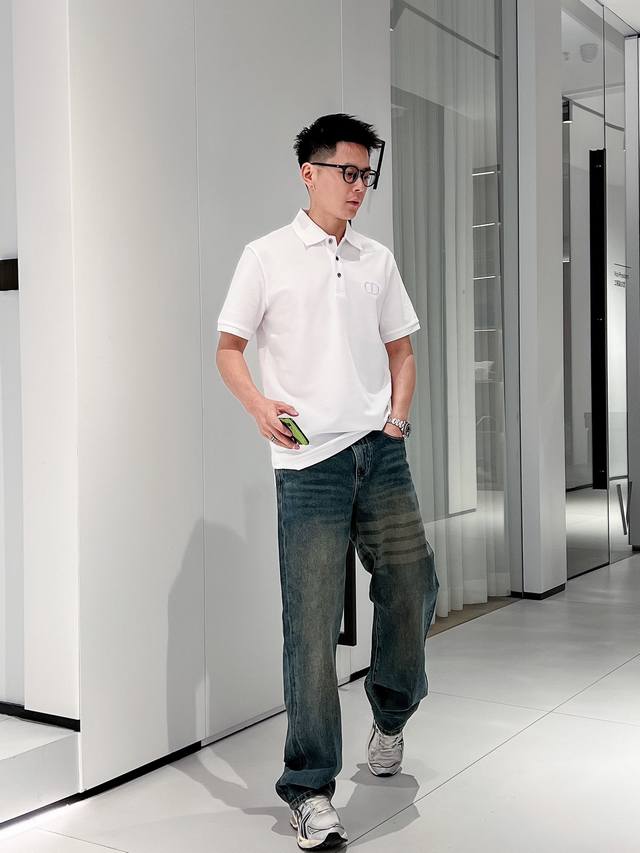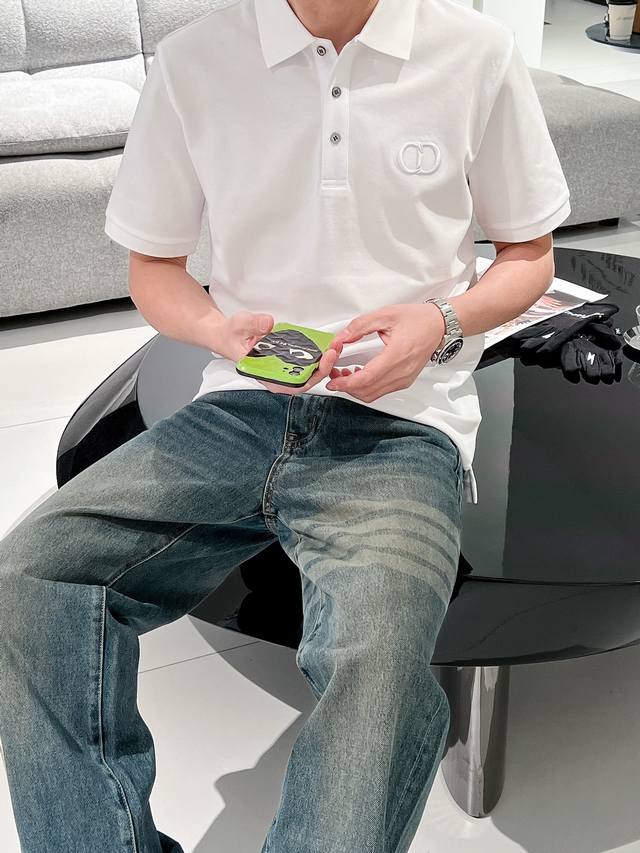 Dior Cd 2025Ss summer new men's lapel polo shirt with embroidered logo! A classi