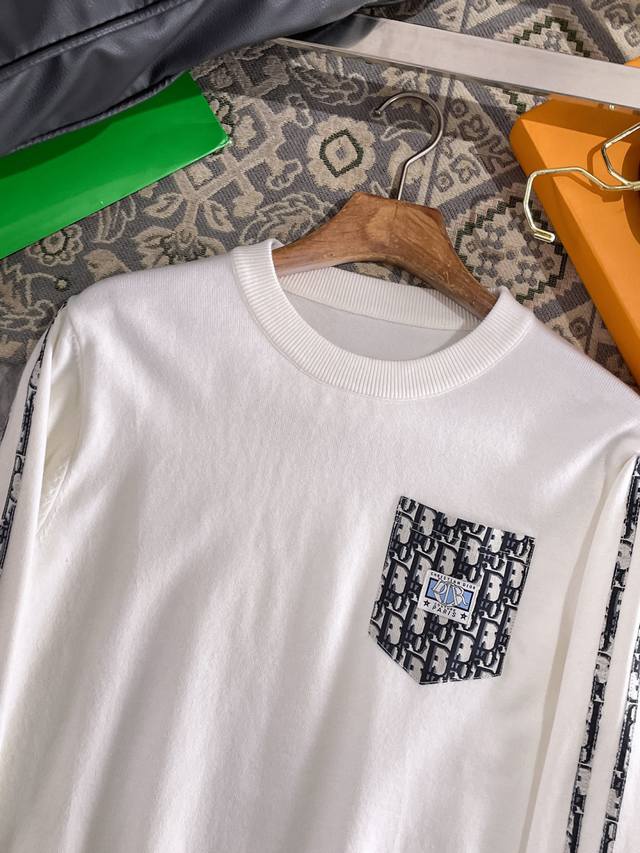 Dior Crew Neck Sweater, made with a wool blend yarn, offers excellent warmth, a fluffy and soft feel, and extra care for your skin, giving you a weightless wearing experience. High-quality natural fibers ensure a high-quality lifestyle. The entire sweater uses a solid color single-sided weave, with a fitted yet relaxed fit, a clean and simple knit, and a timeless and sophisticated design. Meticulous workmanship, fashionable and versatile, the dropped shoulder design is simple and comfortable, while the reverse stitching adds a touch of quality in the details, making the wearer more understated and sophisticated, better showcasing the clean and sharp side of a successful man. The collar, cuffs, and hem use a dense rib knit, which is tight and elastic, not easily deformed, highlighting the quality of the details. Whether worn alone or as a base layer, it provides both warmth and a refined sense of style. Sizes: M-Xxxl