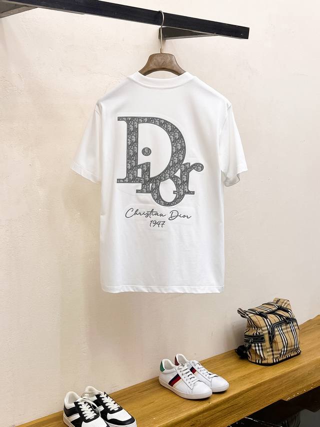 Dior has three complete labels. 2025 summer new short-sleeved T-shirts, available at the counter, original goods, fashionable imported original technology fabrics, comfortable and breathable upper body, original customized hardware accessories, handsome upper body, three complete labels, recommended style, high grade, purchasing level size: M-3Xl
