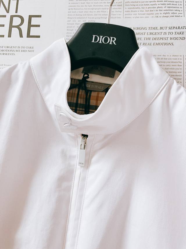 jacket's lining features a classic check pattern, adding a touch of vintage charm and modern flair. The delicate check not only feels premium, but also contrasts with the jacket's white cotton twill, highlighting the brand's ingenuity in design. Furthermore, the premium lining further enhances comfort, making every wear a true pleasure. From the meticulously selected fabrics to the meticulously crafted details, this jacket embodies the brand's century-old fashion heritage and innovative spirit.