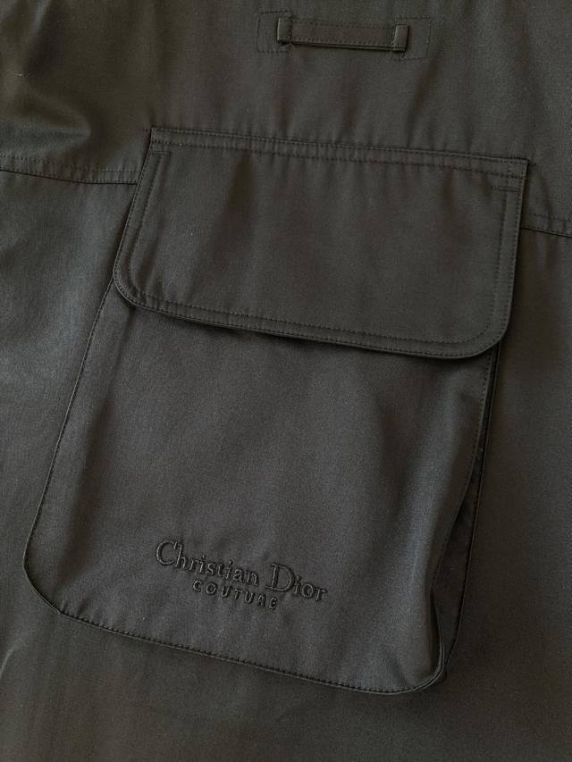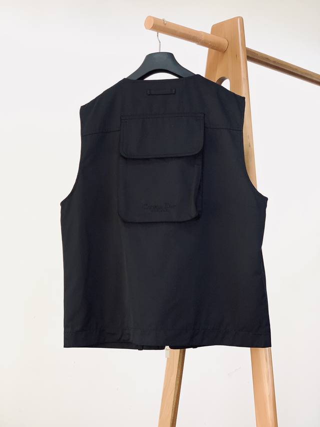 's multiple spacious pockets are a highlight of this vest, adding practicality for carrying small everyday items while also enriching the overall visual experience and creating a unique workwear-inspired chic feel. The webbing design on the shoulders not only adds a touch of design flair but also demonstrates Dior's meticulous attention to detail, enhancing the overall shape and silhouette.