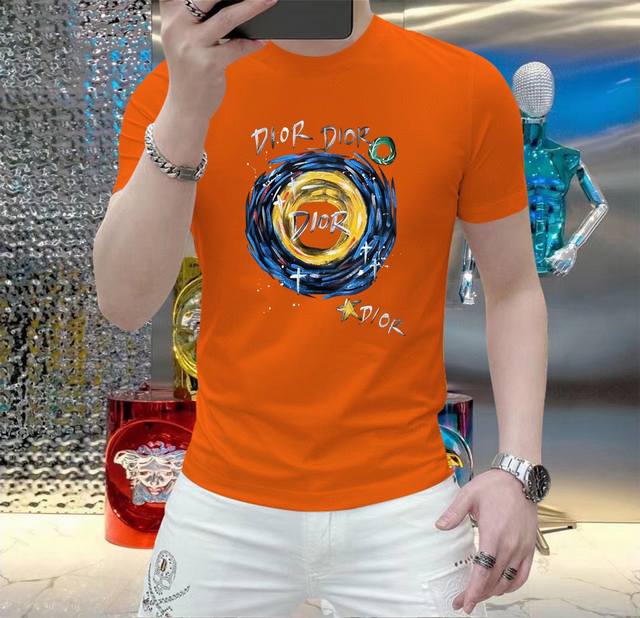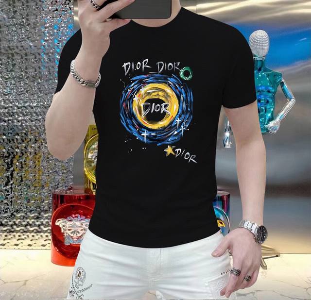 Dior Men's Casual Short-Sleeved T-shirt, a new Spring/Summer 2025 product. Custom-made with a premium logo on the chest. The craftsmanship, detailing, and tailoring are all top-notch. Made from imported mercerized cotton! Stylish and versatile with a sophisticated color scheme. Size M-5XL. Wear up to 220 lbs.