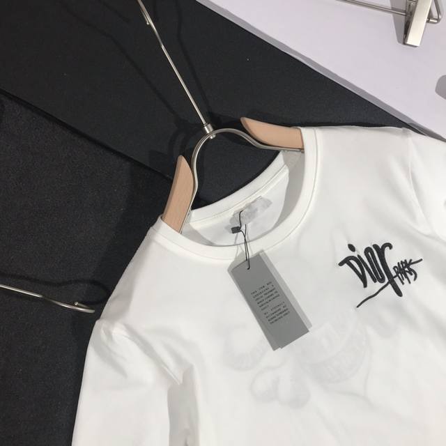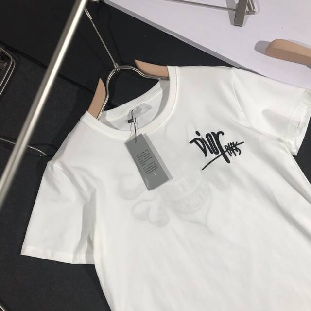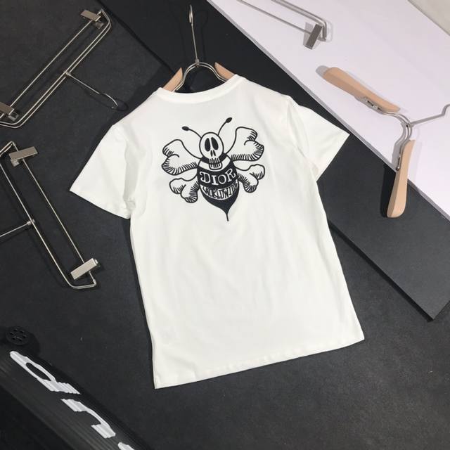 Dior skull and bumblebee embroidered short-sleeved T-shirt, unisex, G-net, available for pre-order. Made from high-quality, ice-porcelain cotton, this is a summer essential. Sizes: S-2Xl