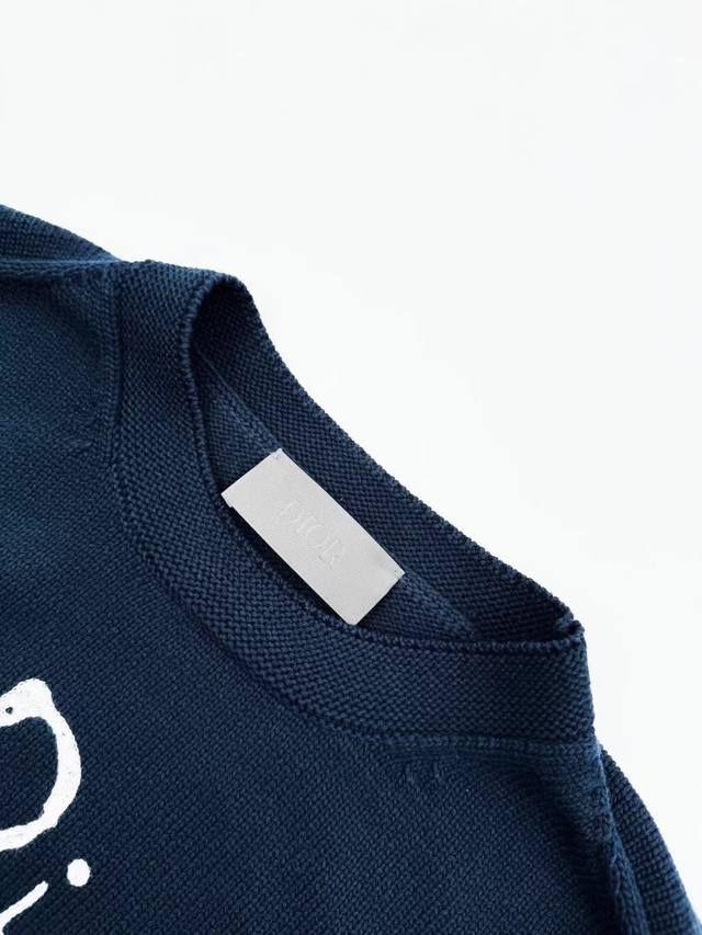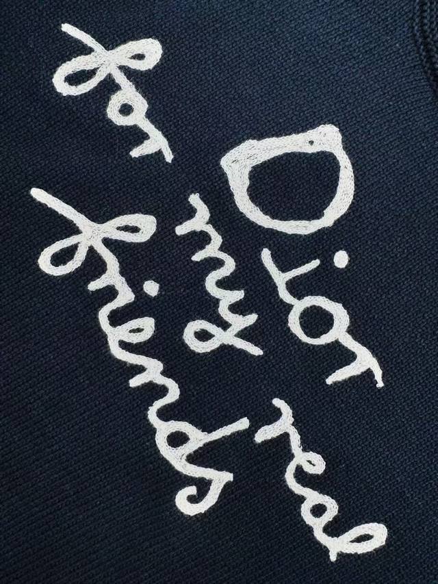 Customized with premium cotton, nylon and wool blended knit fabric for a comfortable, close-fitting fit. The pure white background contrasts with the tranquil light blue, which is elegant and warm, adding a touch of freshness and softness. The neat Dior For My Real Friends declaration on the chest is presented with towel embroidery technology, creating a subtle texture layer, turning the text into a flowing brand badge, and turning the joint thought structure into a walking joint art exhibition, showcasing the beauty of simplicity and the charm of versatility.