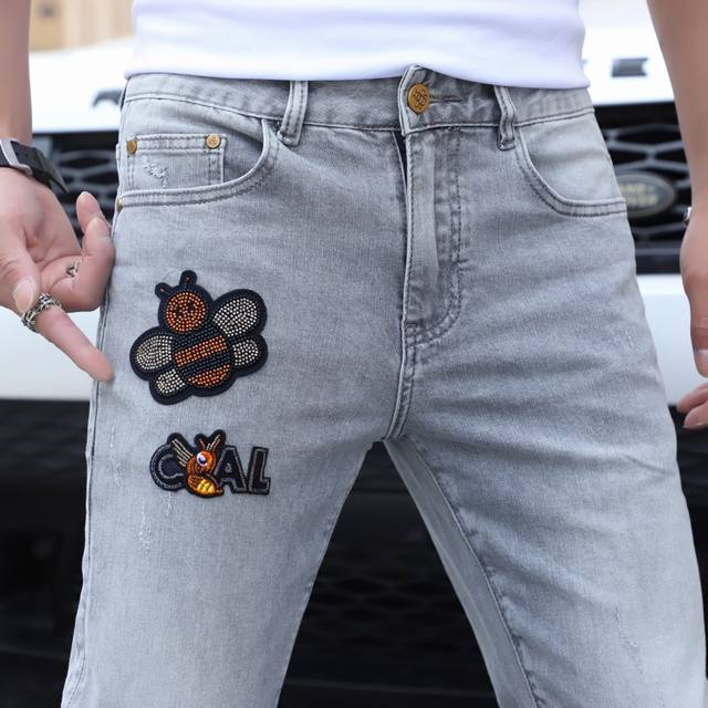 Dior summer collection, a European bestseller, a trendy, aristocratic, and influencer-influenced custom-made. These premium, original, slim-fit, cropped jeans are the highest-quality, premium-quality jeans on the market. Their distinctive design and strong avant-garde artistic expression have made them a global hit. Made from European imported, custom-washed, stretchy fabric, they combine operatic splendor with exceptional comfort, perfectly suiting men's practical wardrobe. They're a top choice for urban, trendy, and casual men. Sizes: 28-38, no 37