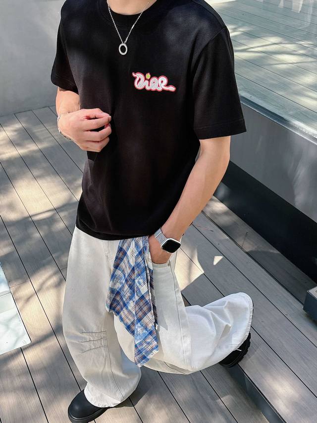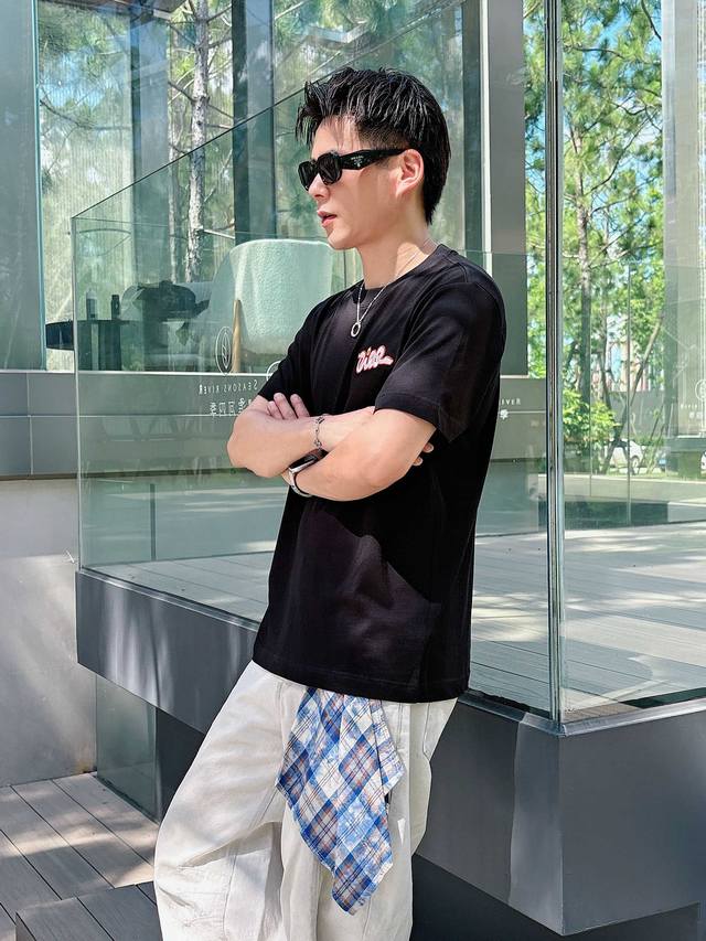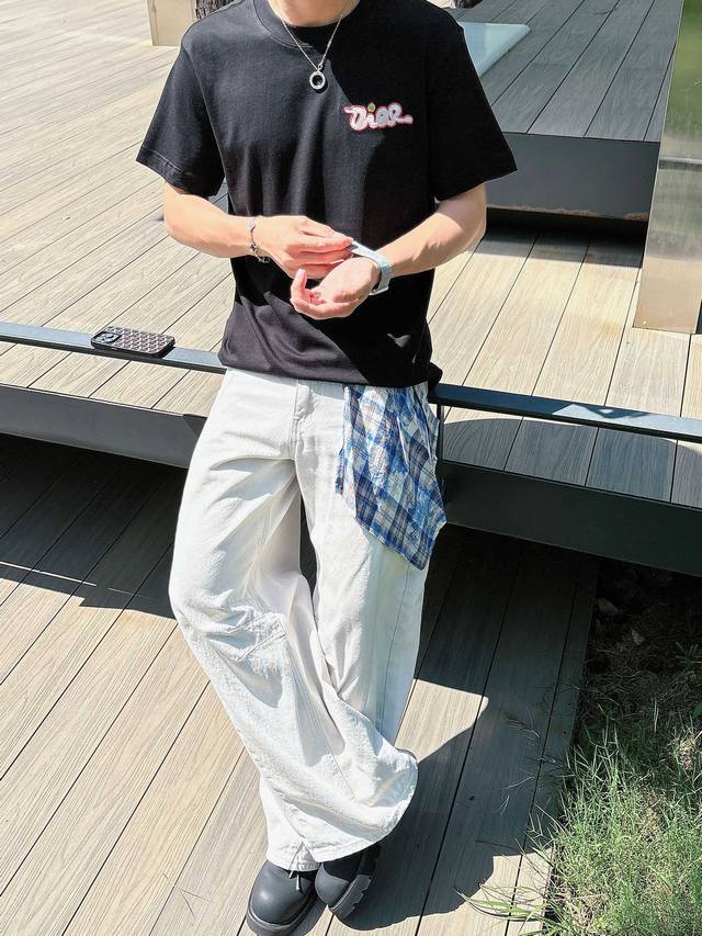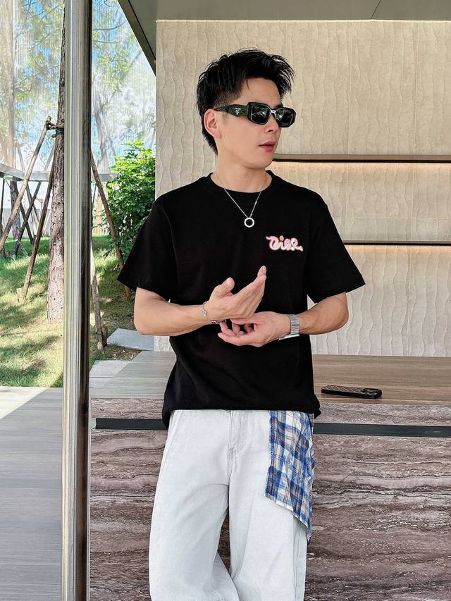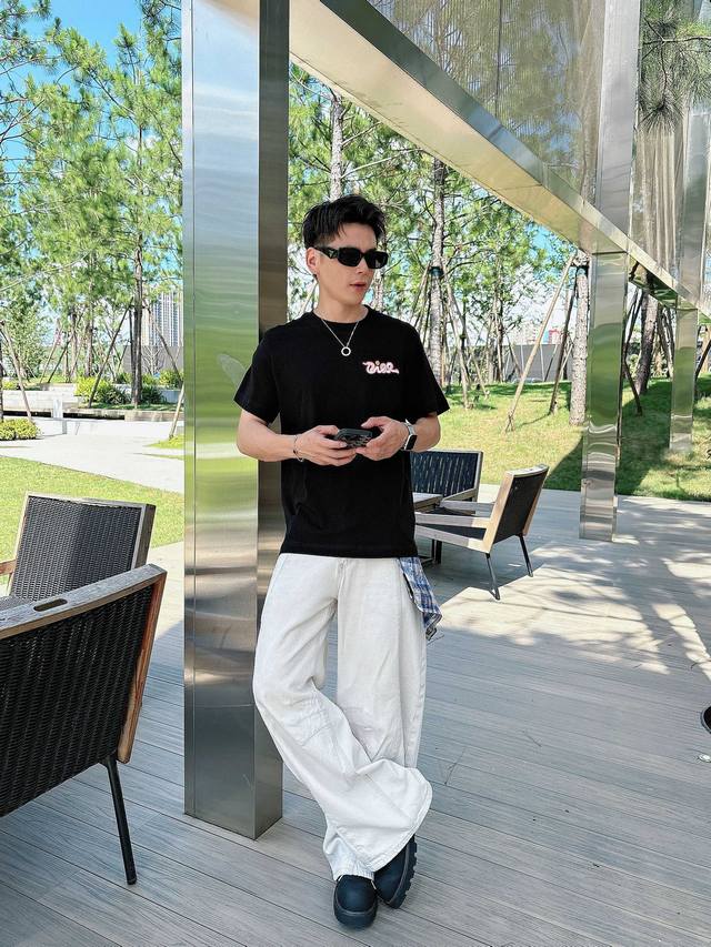 Dior Summer New Arrival, high-standard custom embroidery, very stylish when worn, custom-supplied accessories, imported high-end fabric with a very delicate texture, exquisite and meticulous details, a highly versatile piece that can be paired with any outfit, super flattering fit, a must-have for trendy men. Sizes: M-XL. Colors: Black, White.