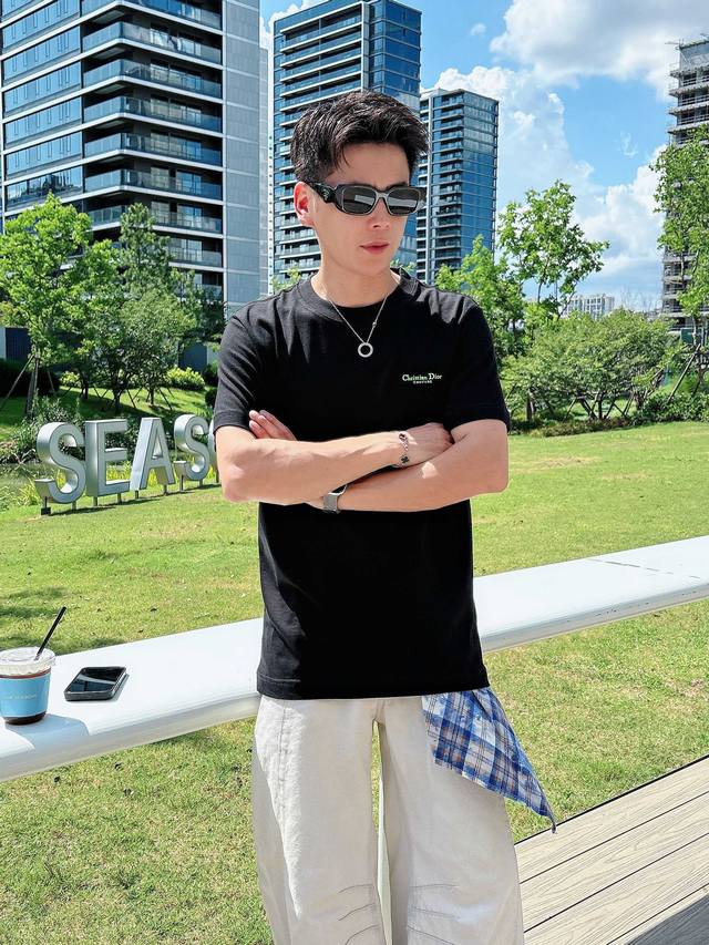 Dior Summer New Arrival. Simple and elegant embroidery, high-standard customization. Very stylish when worn. Customer-supplied accessories and imported high-grade fabrics with a very delicate texture. Exquisite and meticulous craftsmanship. A highly versatile piece that can be paired with any outfit. A must-have for trendy men. Sizes: M-XXL Colors: Black, White