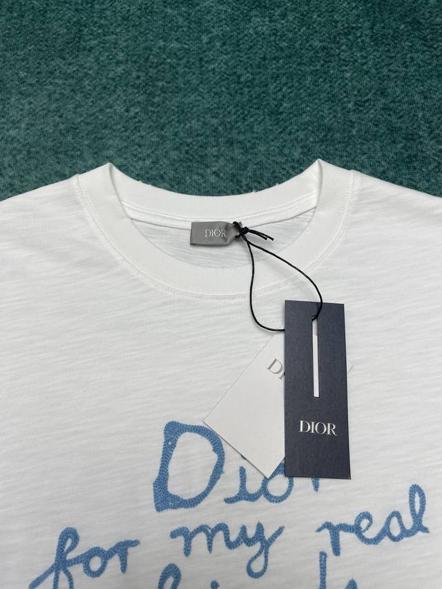 Dior25Ss New T-shirt displays the Dior For My Real Friends logo from the Dior And Hylton Nel collaboration. Crafted from white cotton jersey, it features a classic silhouette with a ribbed crew neckline, embroidery on the chest, and burnt effects on the collar, sleeves and hem. A casual fit that can be worn with sweatpants or jeans.