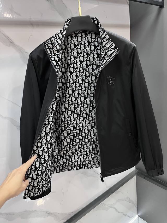 Dior's 2025 Fall/Winter Haute Couture Reversible Collection! This rare, classic, and stylish double-sided jacket features a solid color on one side for a calming effect, and a flocked logo print on the other for a luxurious look! Made from imported windproof fabric with a 3D digital print, it has a delicate feel and the seams are exquisitely detailed. The shoulder seams are neatly stitched, and the slim fit is perfect for both casual and business wear. It's a stylish and stylish top! Sizes: M-Xxxl