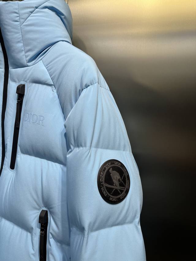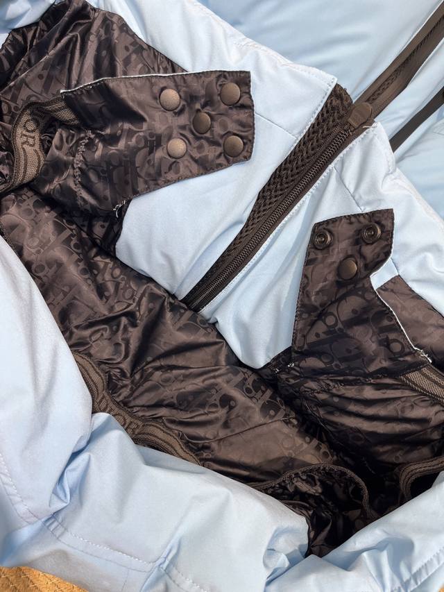 collaboration ski jacket, a heavy-duty down jacket in sky blue, yellow, and navy, available for both men and women. This brand has been incredibly popular and familiar over the years, demonstrating its popularity. This year's collaboration with Dior and Di0R is a powerful combination, elevating both brands to new heights. It's incredibly hard to find, so we've purchased it at a premium, developing it for you, and saving you a ton of money. The highlight is the exact same color, details, and trims, with no corners cut. We're sure you'll be amazed!