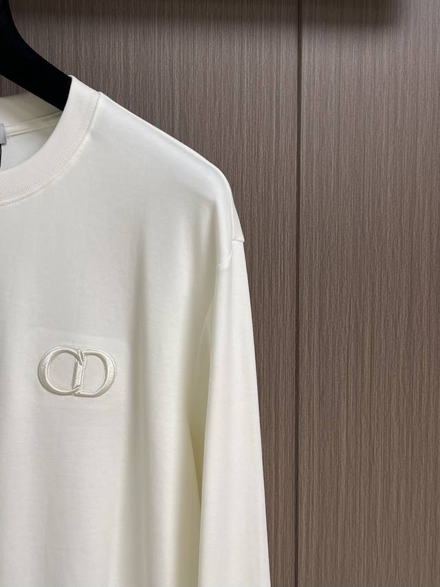 Dior's new 2025 Early Fall collection, a long-sleeved T-shirt with an embroidered Cd logo on the chest. A must-have! A versatile style! Featuring a three-dimensional embroidered lettering on the chest. The lettering logo is a three-dimensional combination. The texture is exceptional, comfortable, and breathable. It's unforgettable! Made from custom-made, high-quality 40s/300g cotton fabric. Comfortable and soft