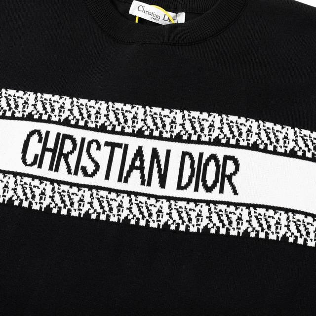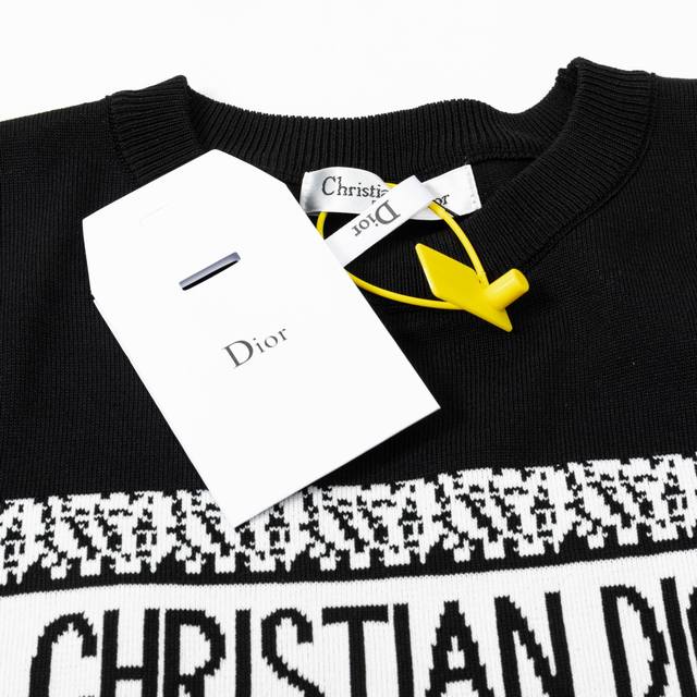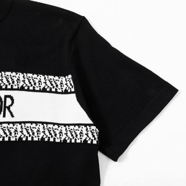 Dior's new classic logo, striped contrasting jacquard knitted wool short-sleeved