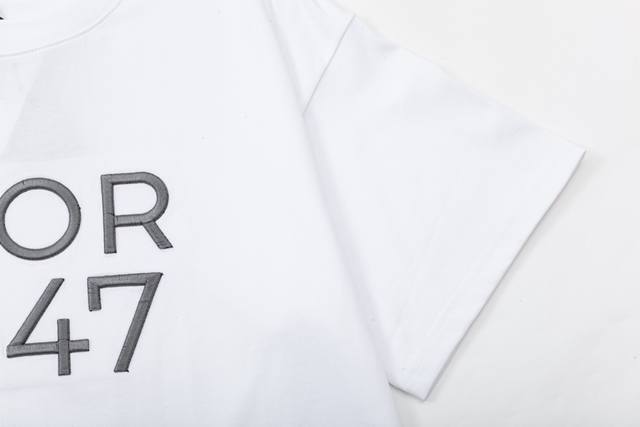 Dior's new custom 32-count 290g cotton cover fabric has been washed to prevent shrinkage, deformation, fading, and linting. High-density embroidery of the 1947 letter logo. Unisex short-sleeved T-shirt