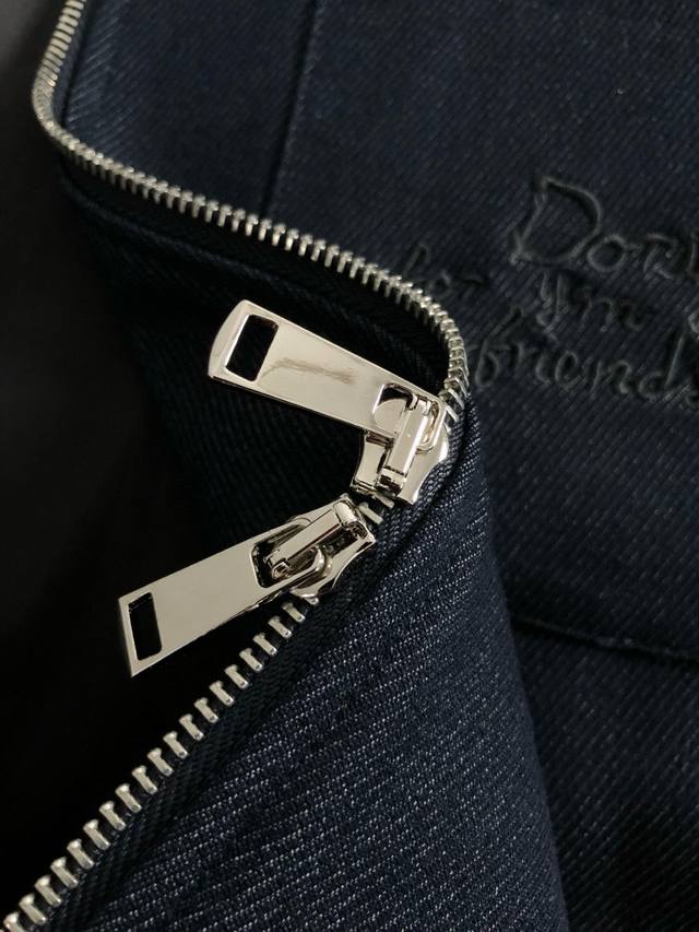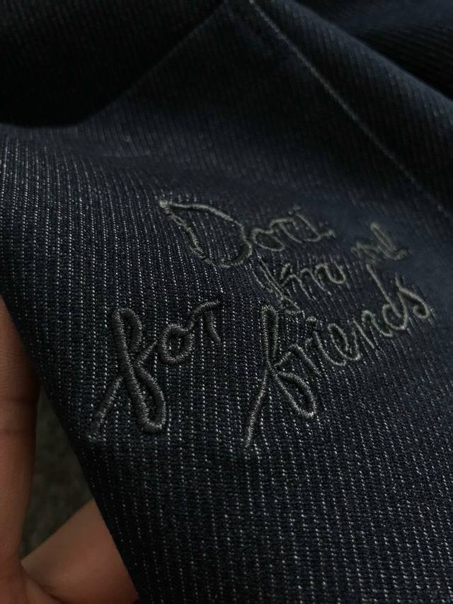 2025 autumn and winter trendy brand denim jacket, with classic dark blue as the main tone, cleverly integrates pocket embroidery elements, breaking the monotony of traditional denim and showing individuality and unruly. The three-dimensional tailoring fits the body shape, and the short design is neat and stylish, easily lengthening the leg lines and creating a casual and free style. The high-quality denim fabric is crisp and wear-resistant, and has both breathability and comfort, suitable for daily outings or light outdoor scenes. The details are embellished with metal buttons and work pockets, adding a retro texture. Whether it is a casual look with T-shirts and jeans, or a mix-and-match style with a layered dress, it can be easily controlled. It is an indispensable fashion item in the spring and summer transition season.