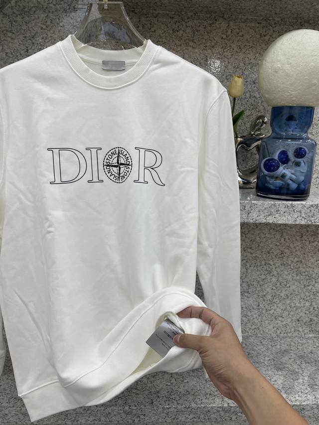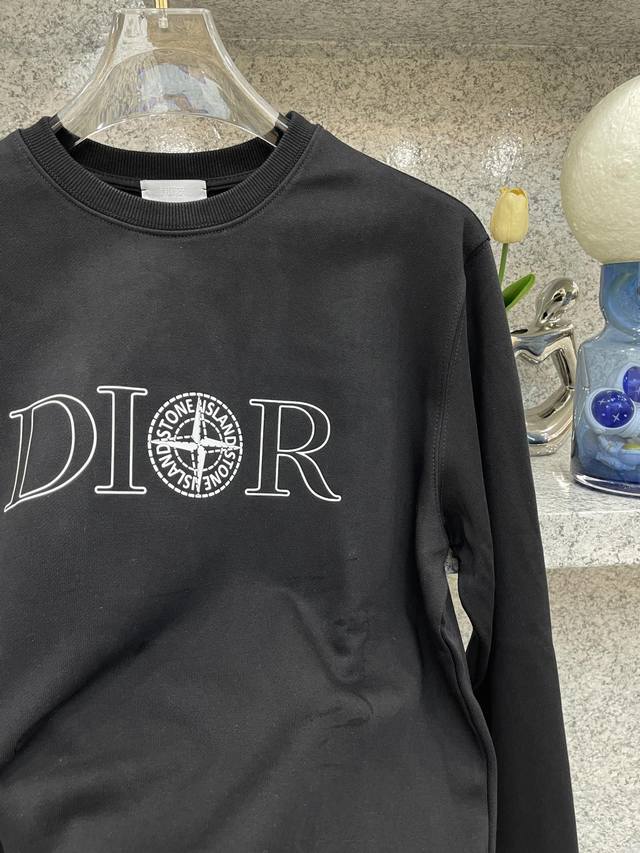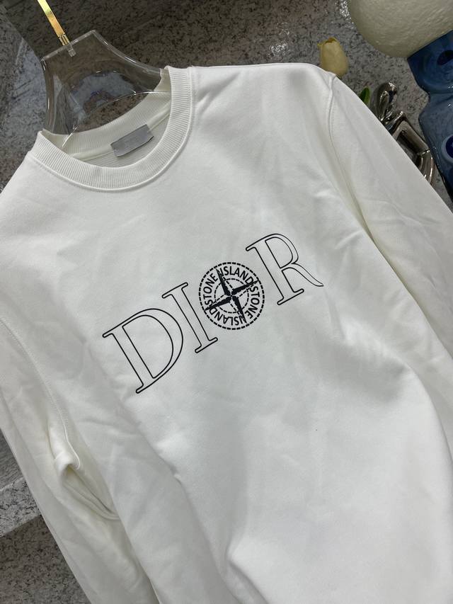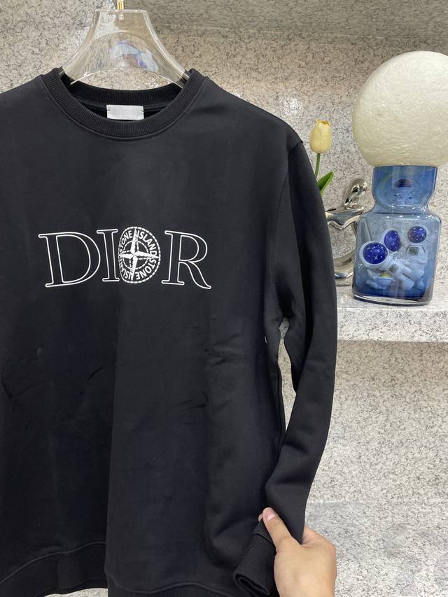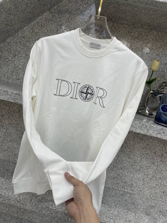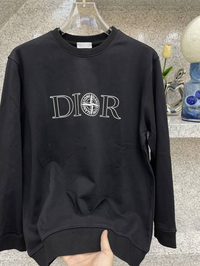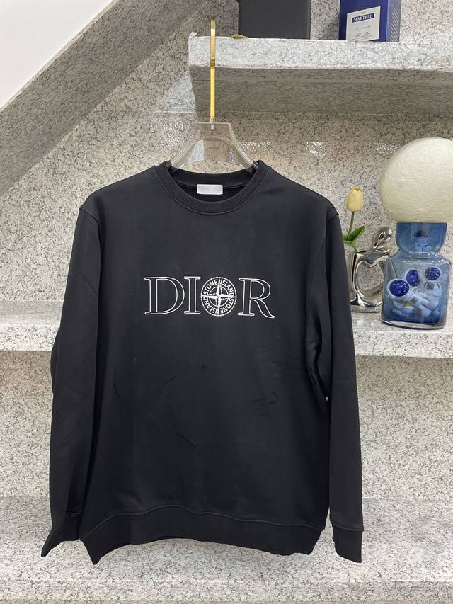 Diro. Dior Autumn/Winter Men's Official Website New Arrival Classic Roman Sweater Fabric 480g Fabric. The front of the men's crew neck sweatshirt features classic logo embroidery, embodying the brand's essence. Made from 380g pure cotton fabric, it's soft, drapes smoothly, and is comfortable, breathable, with a clear texture and a natural cotton feel. Highly recommended! Black, White, M-3Xl