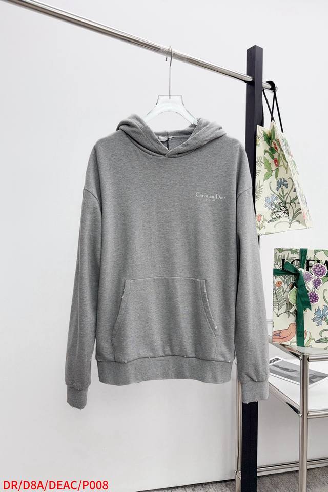 Dr Dior classic logo washed and worn hooded sweatshirt