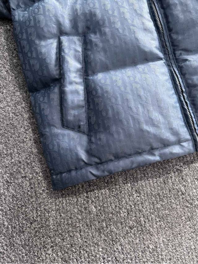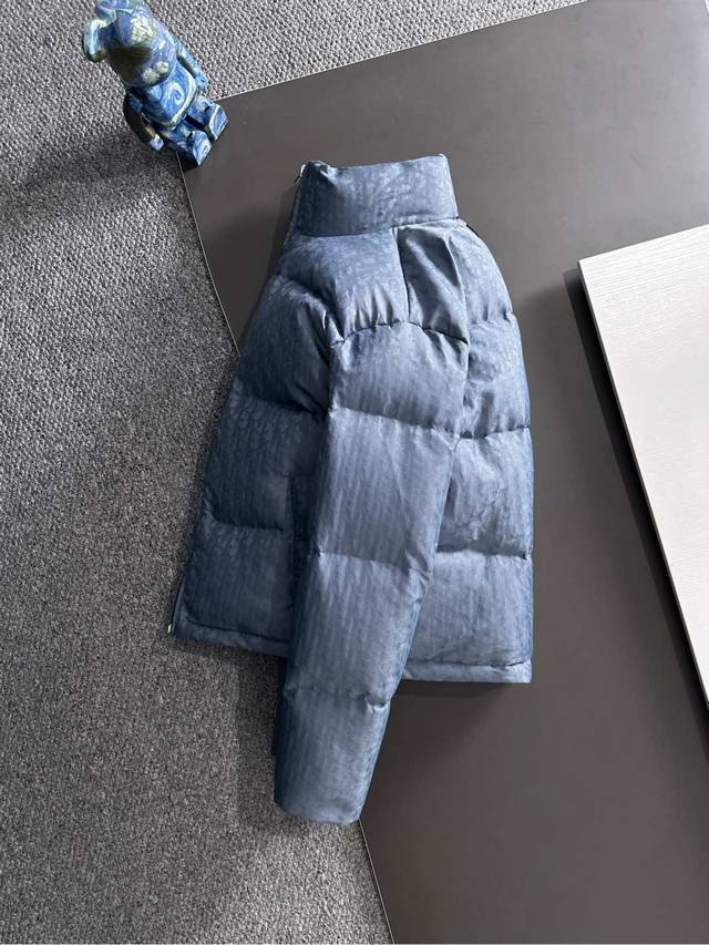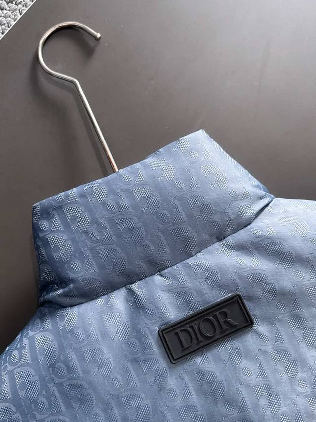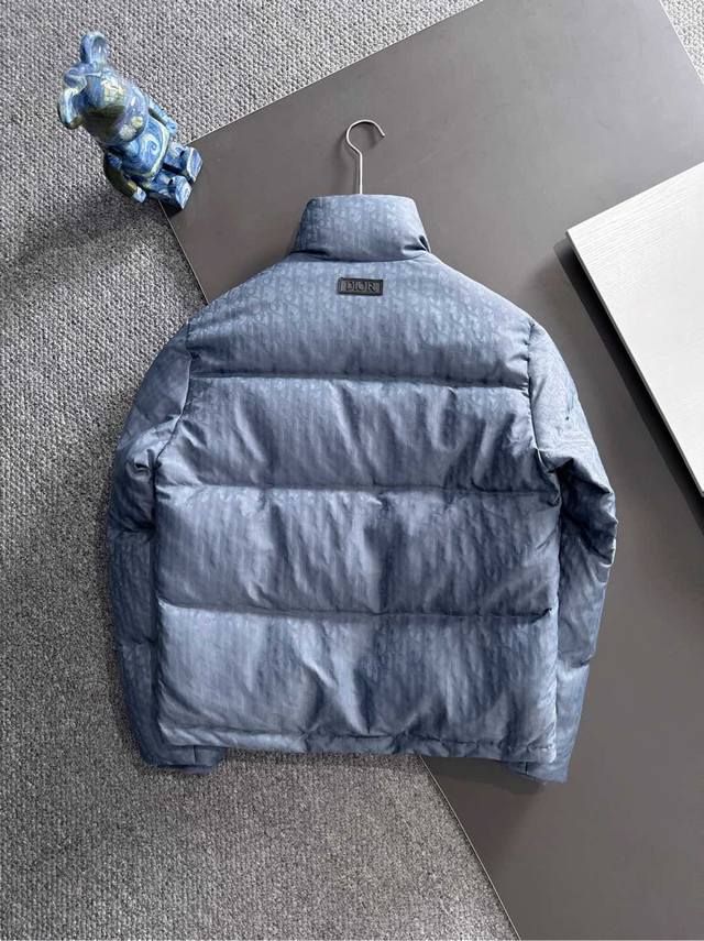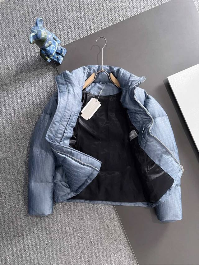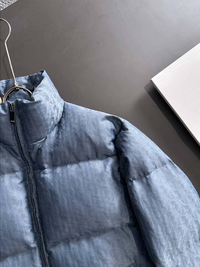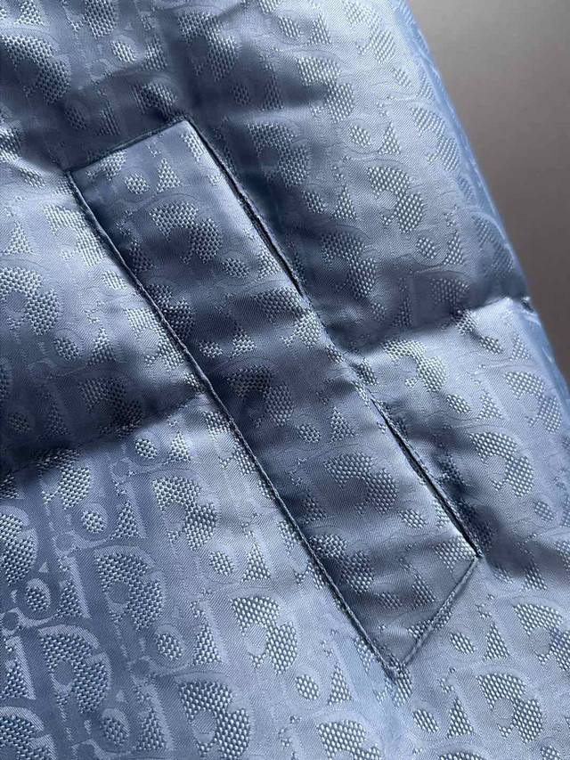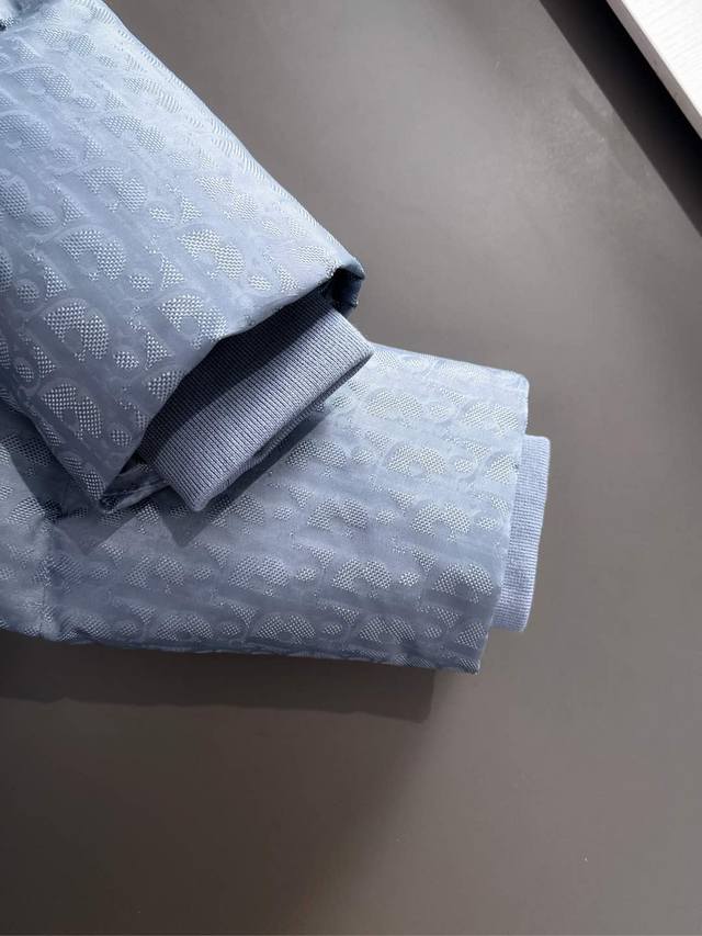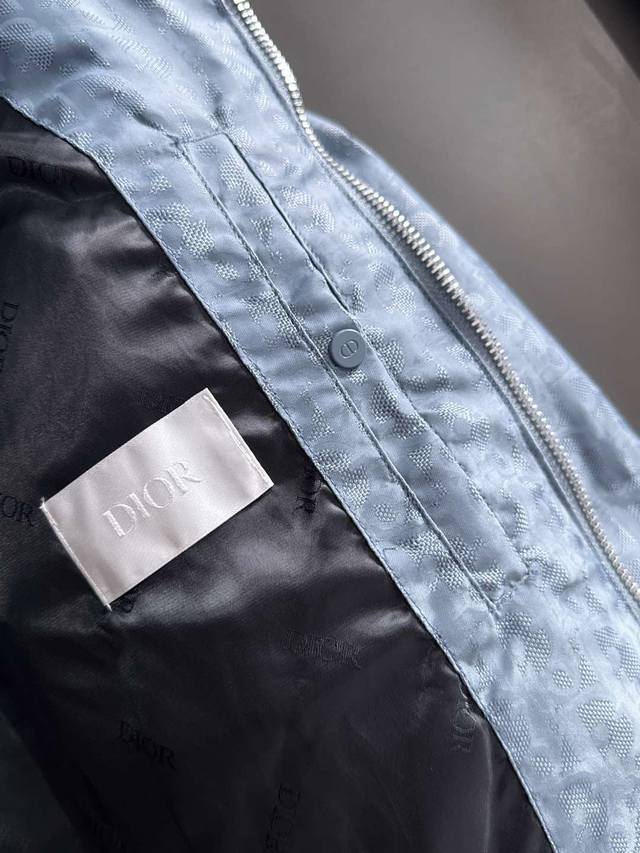 High-quality version with Dior logo lining, comes with exclusive dust bag. This 25-year-old jacket highlights Dior's classic Oblique print. Crafted from black technical jacquard fabric, it features a Dior rubber patch on the back and a stand-up collar for a distinctive look. The entire jacket is decorated with a tonal print, with exquisite details enhancing its style. Comes with original dust bag. (Keywords: Dior rubber patch on back, Oblique print throughout, stand-up collar, two-way zipper closure with Dior logo zipper pull, snap buttons) Colors: Black, Dusty Blue Sizes: S-XL