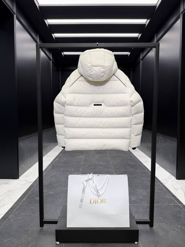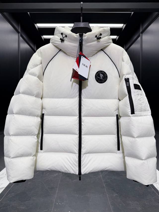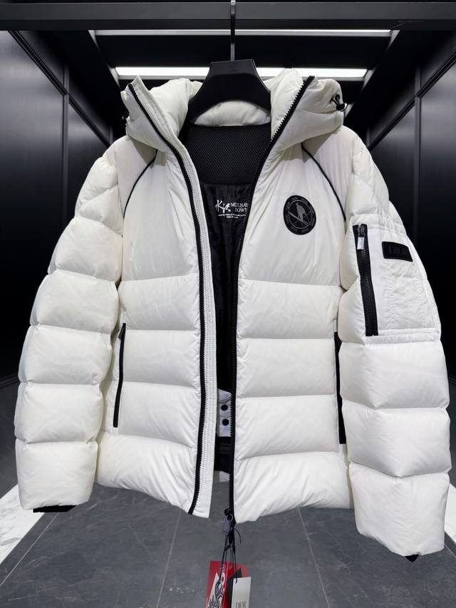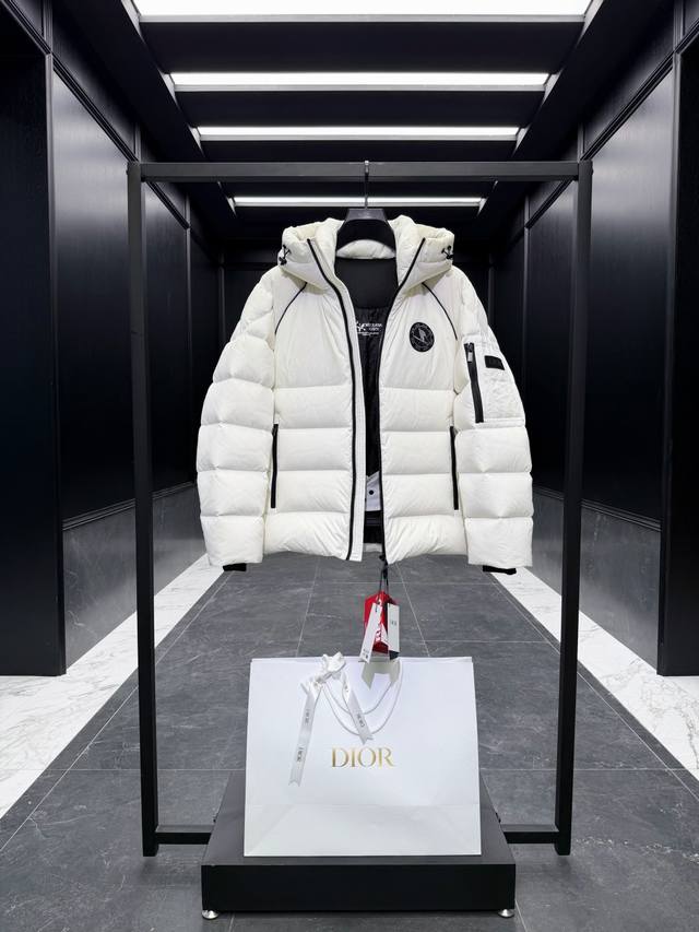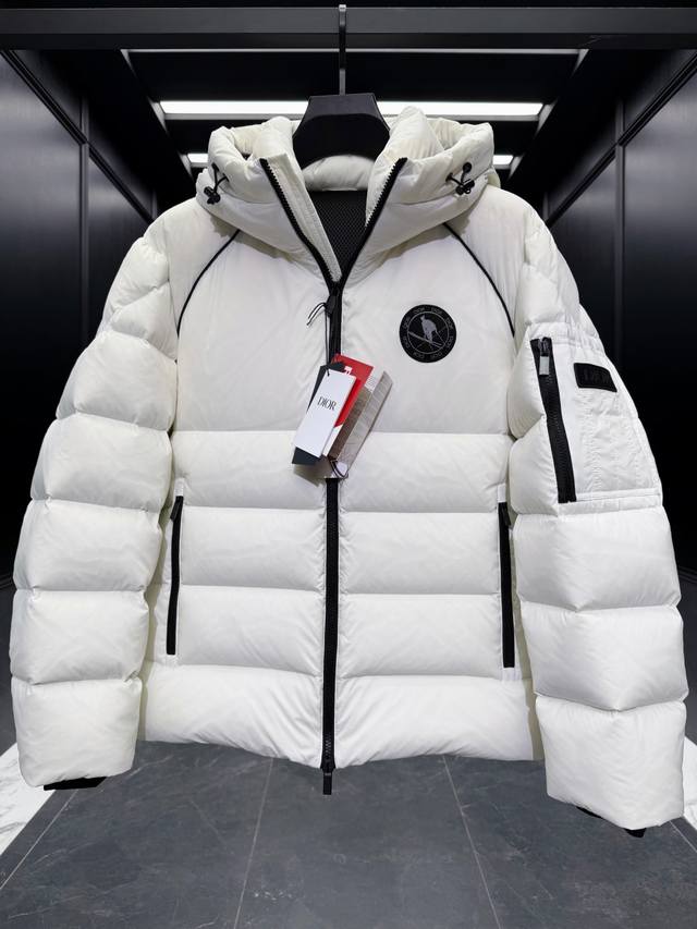Premium Down Dior x Descente Limited Edition Ski Series Solid Color Hooded Logo Patch Ski Jacket. Goose Down Filling. Comes with a Recco Search and Rescue Device. Includes a suit storage bag, extra-large counter bag, original hanger, airplane box, and complete gift set. Dior And Descente is a collaborative series between the French luxury brand Dior and the Japanese professional sportswear brand Descente, focusing on high-end ski apparel and down jackets. This series blends Dior's fashionable elegance with Descente's exquisite craftsmanship, featuring high-performance ski equipment such as ski parkas, down jackets, and gloves, emphasizing waterproofing, warmth, and detailed design. Product Features: Design: Combining Dior's fashionable silhouettes with Descente's technological craftsmanship, for example, the ski parka highlights elegance, while the down jacket emphasizes fluffiness and practicality . Ddd Craftsmanship: Utilizing high-quality materials such as waterproof fabrics, reflective elements, and delicate embroidery, it regains its fluffiness with a simple pat. DDD Product Description: This ski jacket is from the Dior And Descente And peter Doig collaboration, cleverly combining the expertise of the Japanese brand Descente with Dior's haute couture craftsmanship. It is meticulously crafted from white and black taffeta technical fabric, featuring new rubber patches on the sleeves. The stand-up collar and windproof cuffs exude a modern feel. It can be paired with matching ski pants for a complete look. Ddd Sleeves are adorned with a tonal rubber Dior logo Ddd Left sleeve features a Dior And peter Doig rubber patch Ddd Sleeves and front feature a Cd Diamond peter Doig zip pocket Ddd Hood Ddd Double-layered windproof placket Ddd Recco passive reflector Ddd 100% Polyamide Ddd Made in Japan Ddd Size: 48-56 Black/White DDD