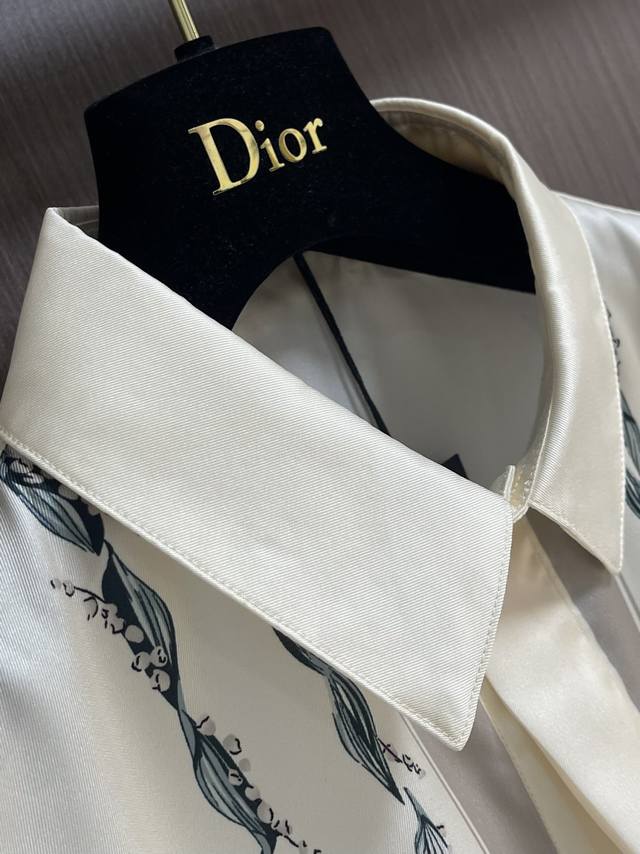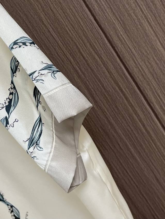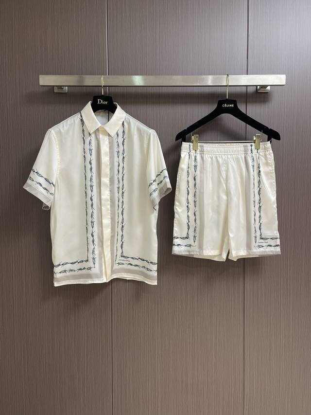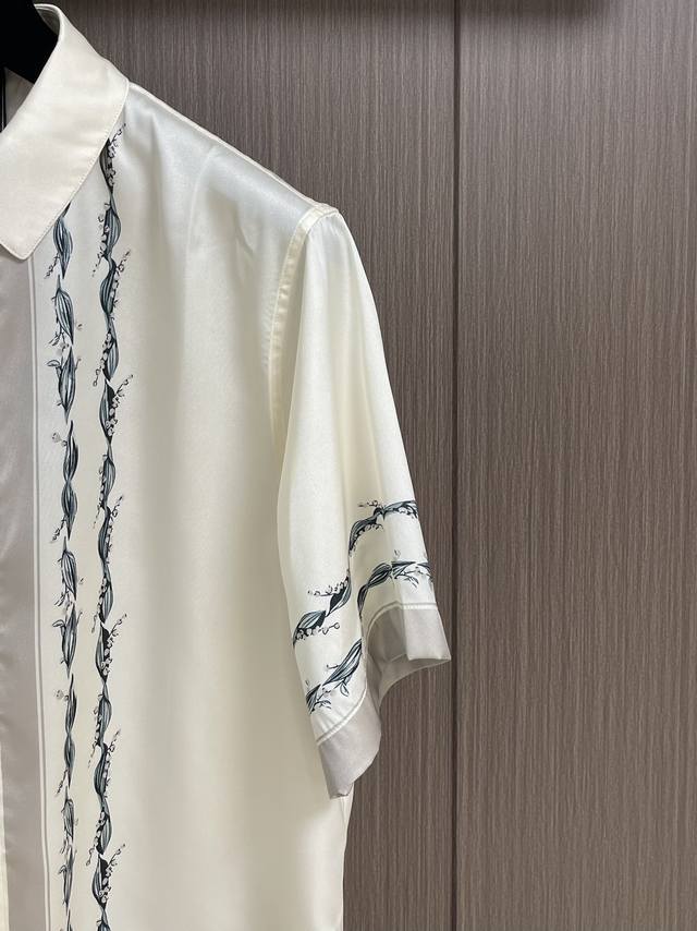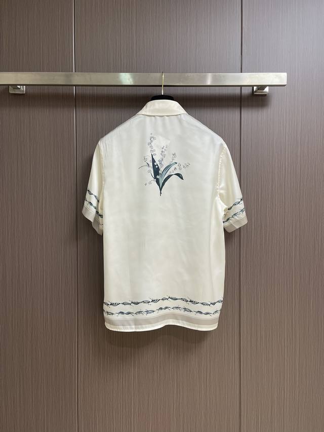 Top Shorts Dior White Silk Twill Lily of the Valley Print Short Sleeve Shirt Sh