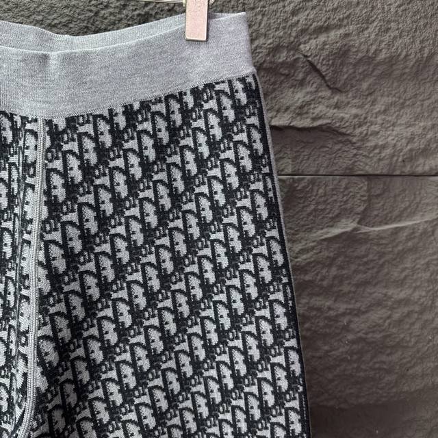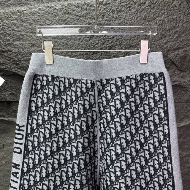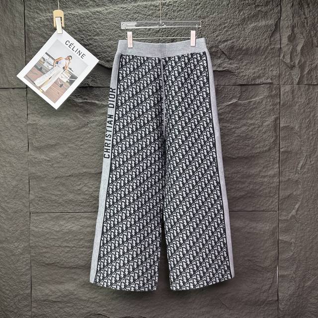 Dior 2025 new double-sided full-print logo couple loose knit straight pants