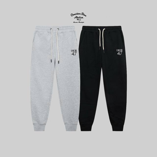 Dior 25Ss show-style slim-line logo simple logo sports pants 380G weight compatible with all body types