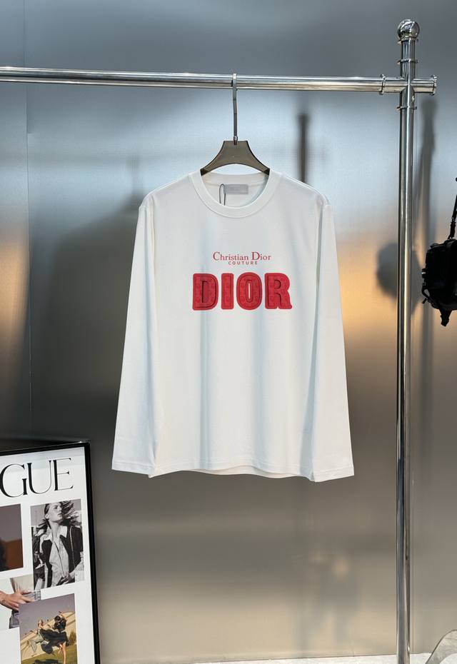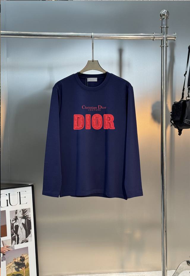 Top-tier style! Dior 25S new modal long-sleeved T-shirt. The most stylish item this season. Features the classic Dior logo on the chest. The 3D Dior lettering is highly recognizable and visually striking. The letter texture adds a touch of luxury, and the letter combination creates a unique visual effect! Crafted from premium G modal cotton, it's incredibly soft and comfortable. Its fine texture and comfort are guaranteed, providing an exceptional wearing experience! Colors: Black, White, Dark Blue. Sizes: M-3XL (slim fit). S and 4XL can be custom-made! Recommended size: L for 175cm, 140kg.