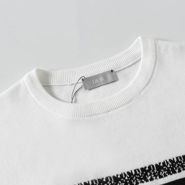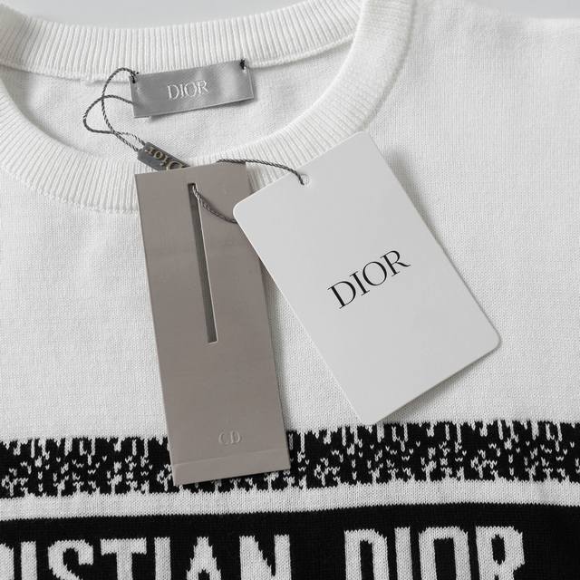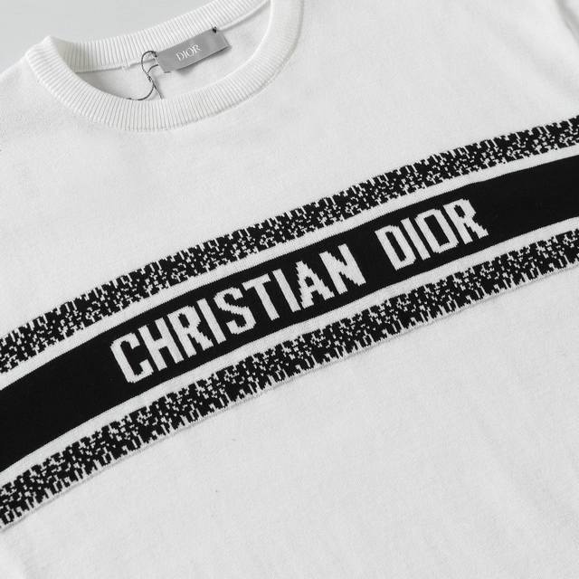 9844# Special Price. No returns or exchanges for non-quality issues. Bulk order details. Dior logo jacquard knit crew neck short-sleeved T-shirt, quality guaranteed. A must-have for trendsetters. All labels are on. Unisex. Colors: Black, White. Sizes: Xs, S, M, L.