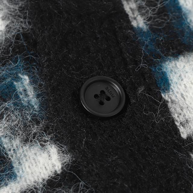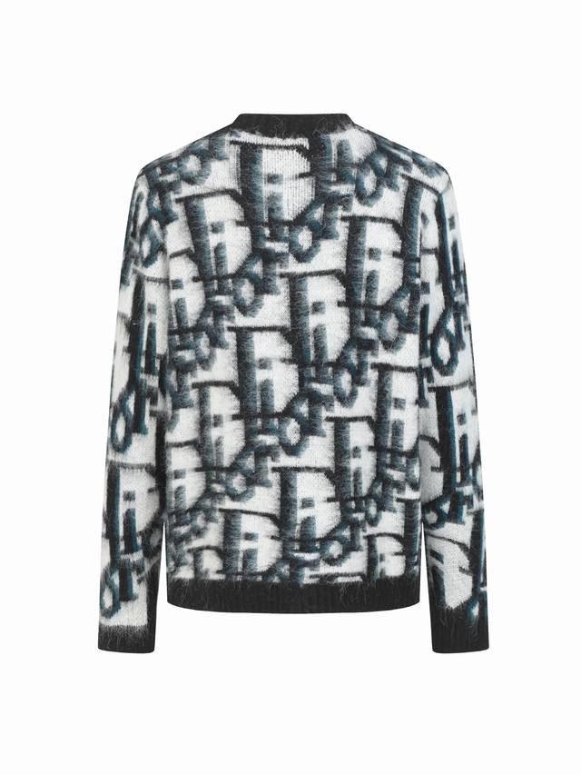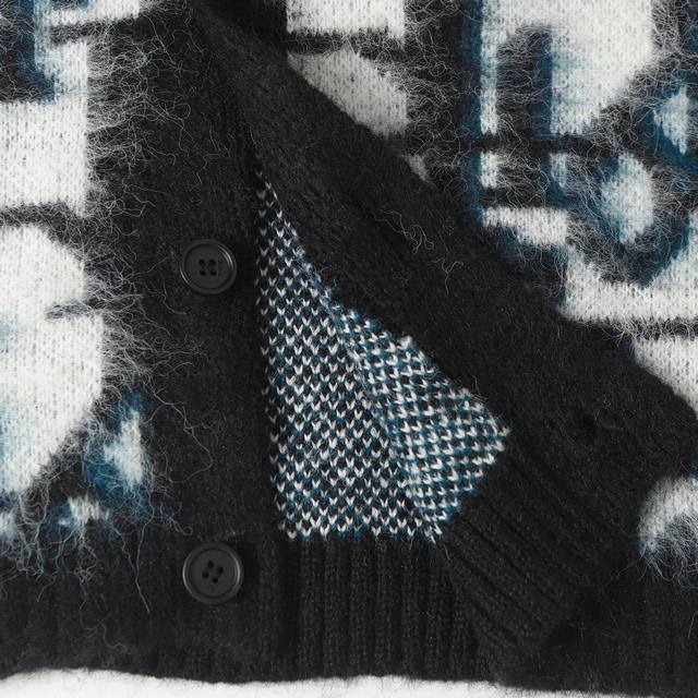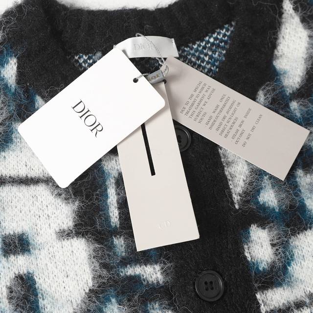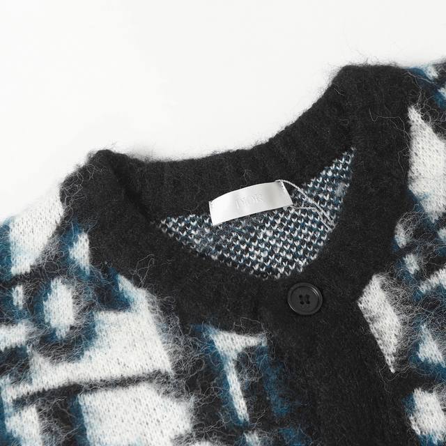 Cd Dior Monogram Mohair Cardigan DDD Size SML DDD Purchased directly from the original, custom-knitted with 70% pure mohair. The cardigan uses rich, finely brushed mohair sourced responsibly, woven with imported Stoll yarn. The entire garment is meticulously aligned, with every stitch perfectly aligned. A vibrant fluorescent hue highlights the full-width twill monogram pattern. The mohair undergoes a natural shrinking treatment after washing. After the cardigan is knitted, loose threads are manually removed, knotted, and sewn together. After sewing, it is washed, initially ironed, and shaped. Then, the clips are removed, and the fibers are gathered. After further washing, and finally, the fibers are gathered again to achieve the same feel and effect as the original. The process is very complex. Features a front patch pocket and custom-molded brand toggle buttons. DDD