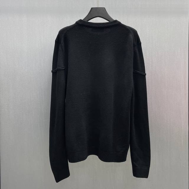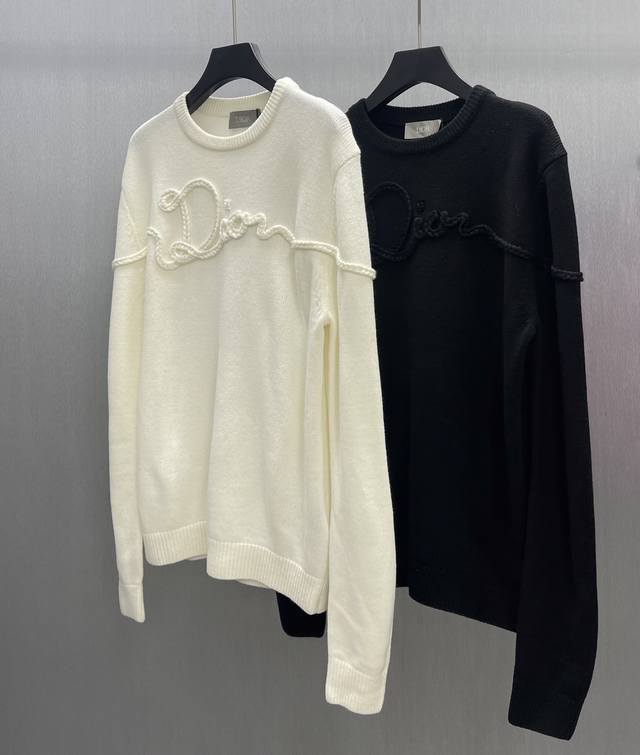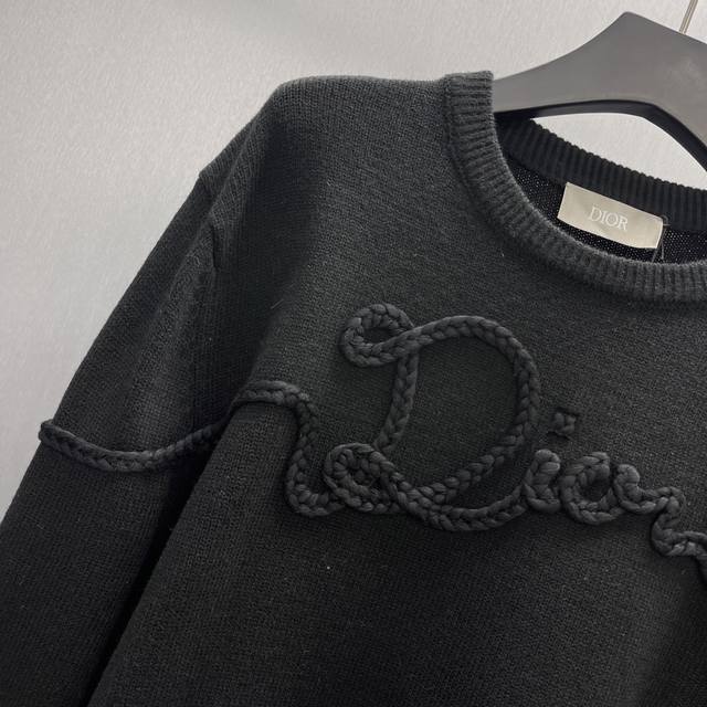 Cd Hemp Rope Knitted Logo Sweater Ddd Size: S-XL Ddd This sweater is a new addition to the Spring 2026 menswear collection, adorned with the Dior Ribbon logo, paying homage to the exquisite craftsmanship of the Dior ateliers. Crafted from a black sheep's wool jersey, it features a ribbed crew neck, cuffs, and hem. The elegant fit pairs well with jeans for a sophisticated, casual look. DDD Ddd