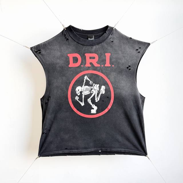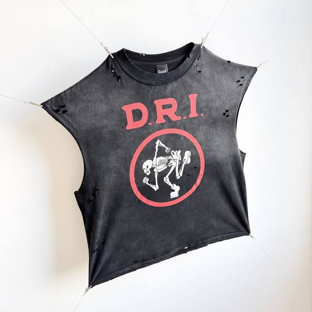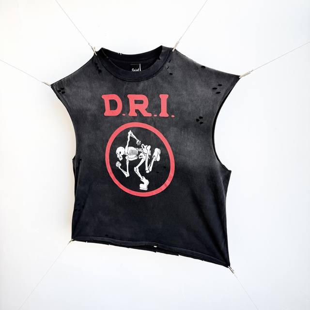 Cvt-11 DRI "Real Punk" Limited Edition Heavyweight Wasteland Style Distressed Vest with Reverse Collar, Shoulder Overlocking, Single Stitching at the Hem, Assault Fermentation Wash, and Multiple Knife-Installation Damaged Details. Sizes: ML XL DDD DRI Dirty Rotten Imbeciles is one of the most influential bands in the early extreme metal and hardcore punk scene, widely considered a pioneer of the Crossover Thrash genre. Ddd They successfully blended the dynamism of hardcore punk with the power and complexity of thrash metal. DDD Features a reversed neckline, shoulder overlock stitching, single-stitch hem, multiple distressed cuts, and heavy-duty Assault-treated wash. The shoulders utilize a special overlock stitch, a common technique in 90s vintage vests. This enhances the overall structure of the garment, making it more three-dimensional and form-fitting.