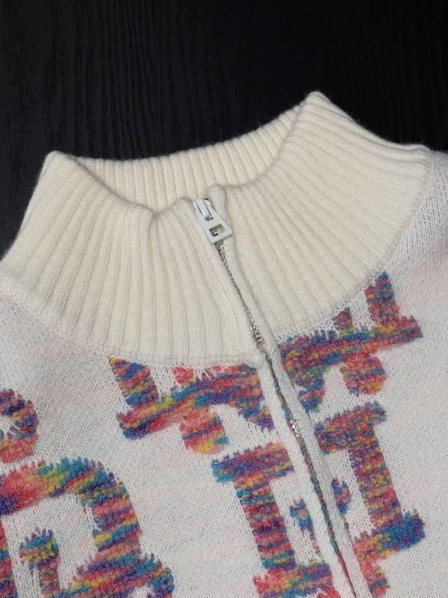 Custom neon gradient knitted material with high-quality wool and obvious stand-up collar and zipper jacket. The whole body is printed with letters jacquard and paired with a unique neon color gradient to highlight the gorgeous fashion tone. The neckline, cuffs and hem are made of elastic knitted threaded edging, which makes it easier to put on and take off and coordinate to meet the various needs of casual daily dating. The first choice for fashionable and high-end experts. Customized fabrics and accessories are recognized. The high version is the real shot of our own~