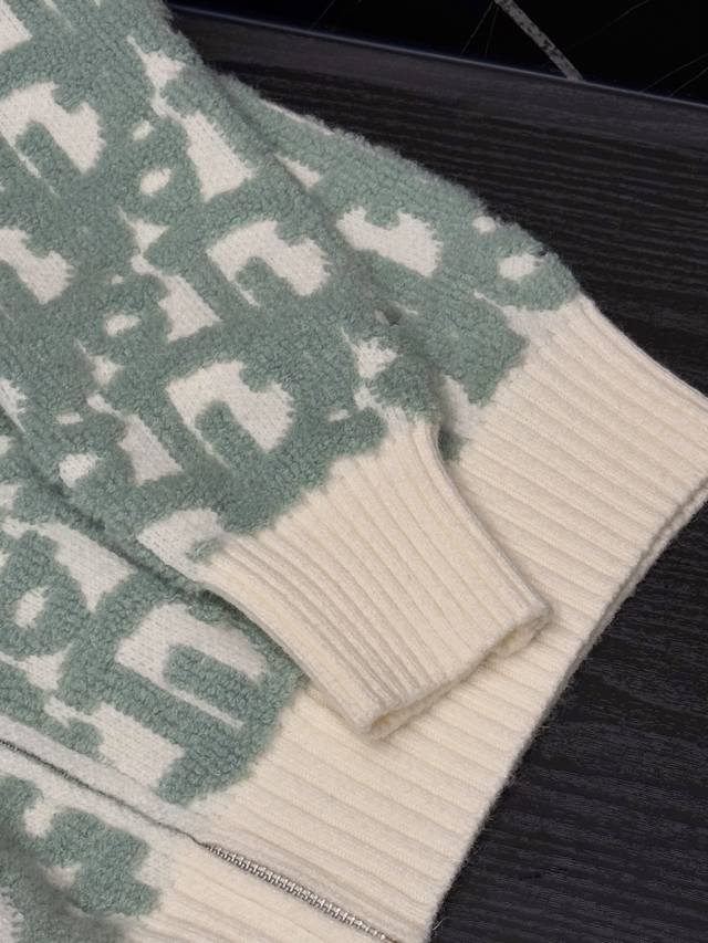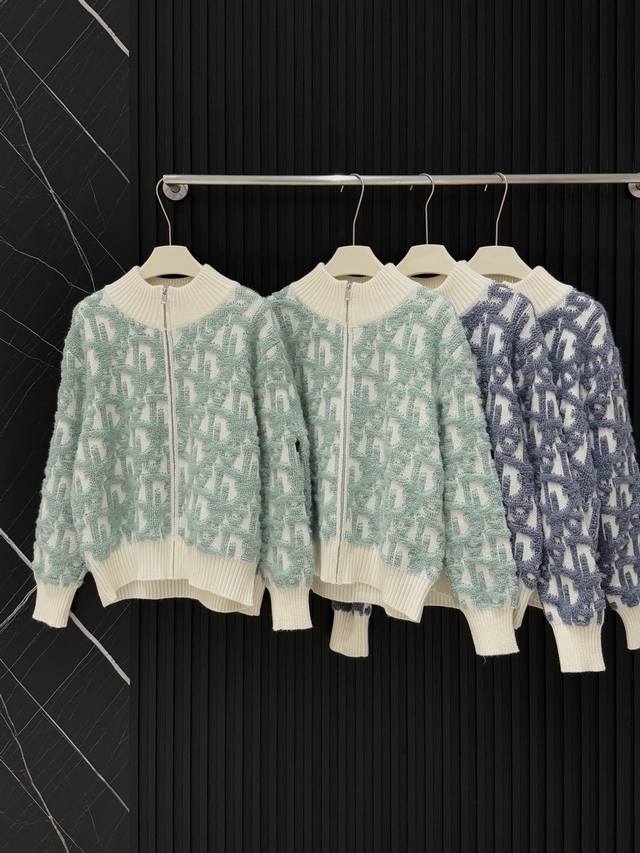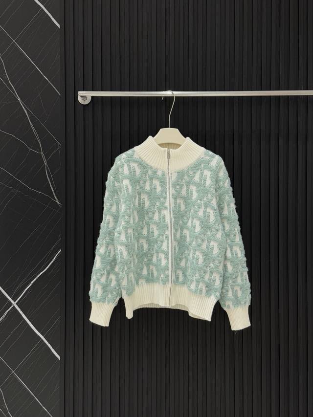 Dior Cd towel embroidered full-print knitted zipper stand-up collar cardigan