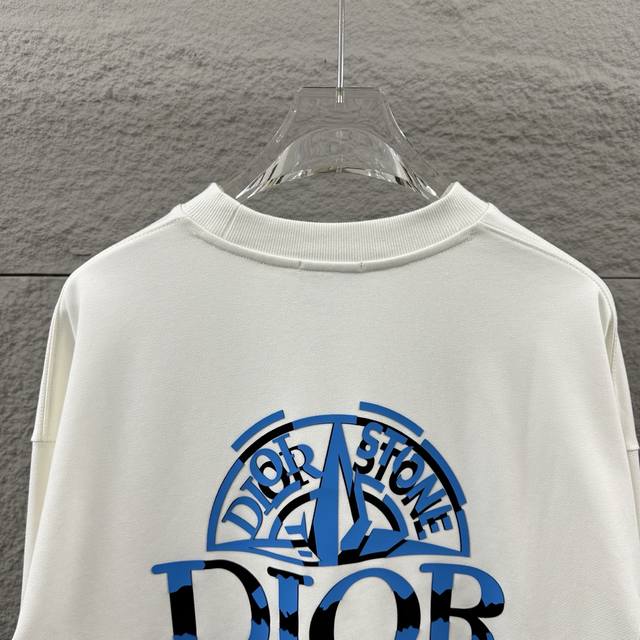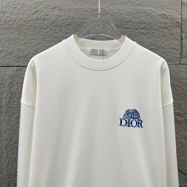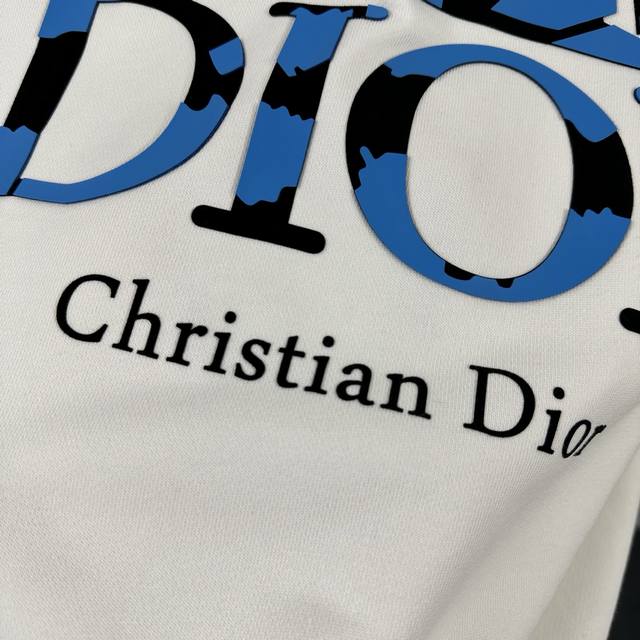 Dio* Christie Dior 2025 Early Autumn/Winter New Classic Letter Thick Board 3D Flocking Patchwork + Silicone Process Simple and Elegant Custom Terry Fabric Long Sleeve Sweatshirt Unisex