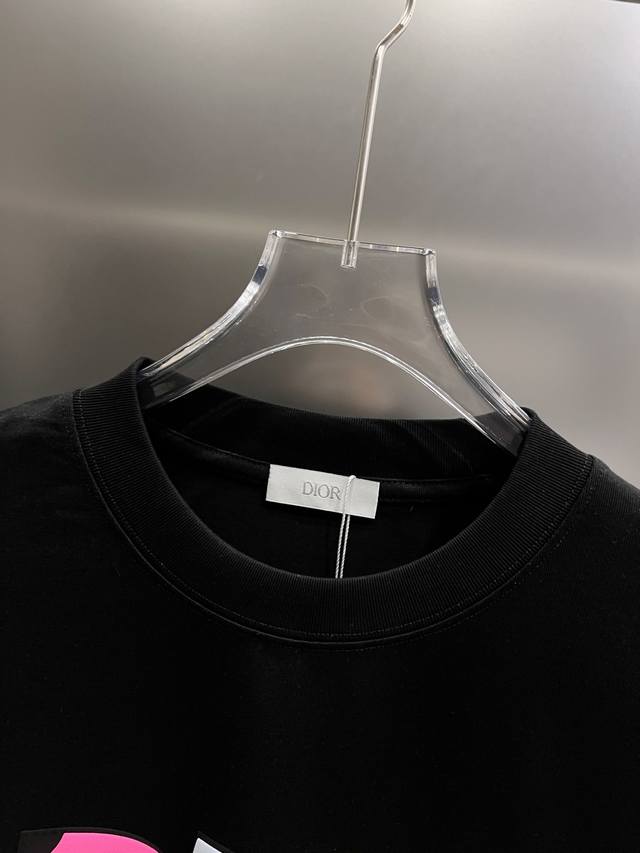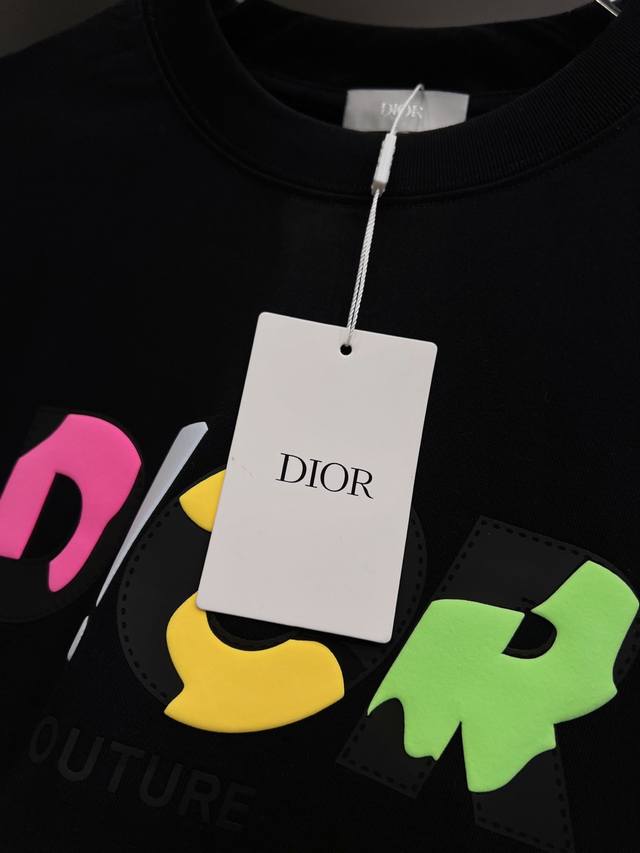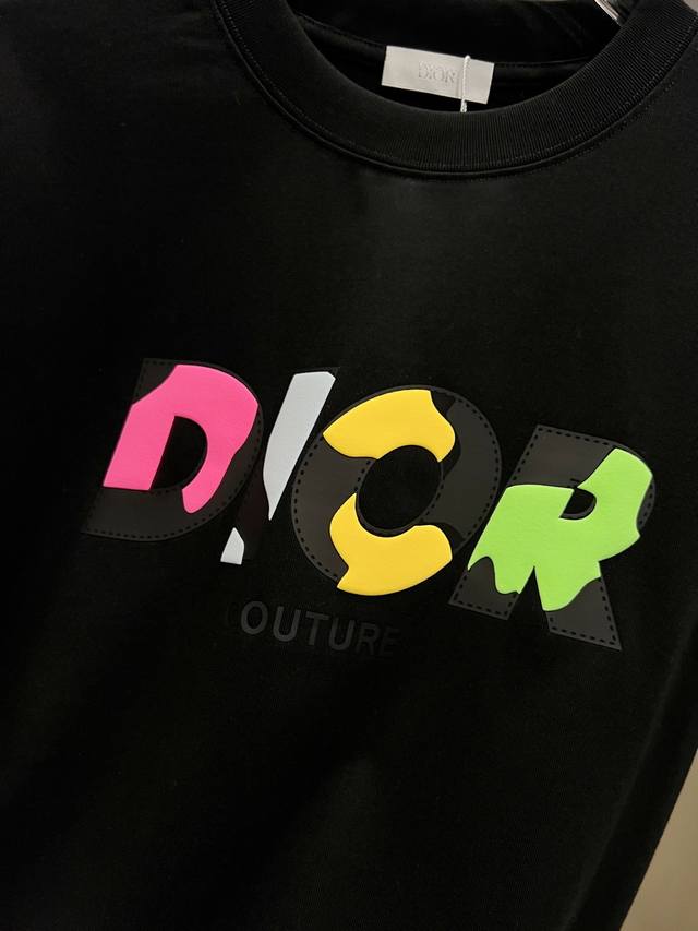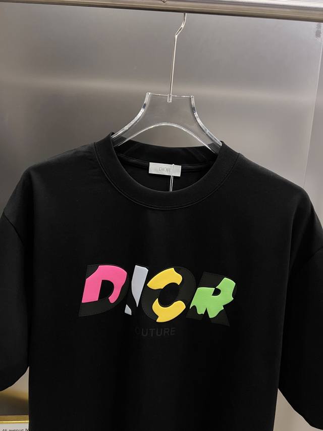 Dio* Dior 2025 Autumn/Winter New Classic Letter Thick Plate 3D Silicone Craft Simple and Elegant Custom Double Yarn Plain Cotton Short-Sleeve T-Shirt Unisex Sizes SML XL XL Five Sizes Black White DDD