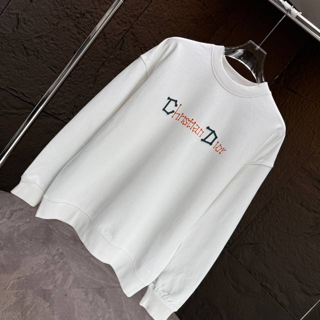Dio* Dior* Ddd 2025 Autumn/Winter New Crew Neck Sweatshirt Ddd 400g Terry Cotton Letter Logo Flocked Skin-Friendly Cotton Ddd Colors: Black, White, Blue, Gray Ddd Sizes: S, M, L, XL, XL DDD