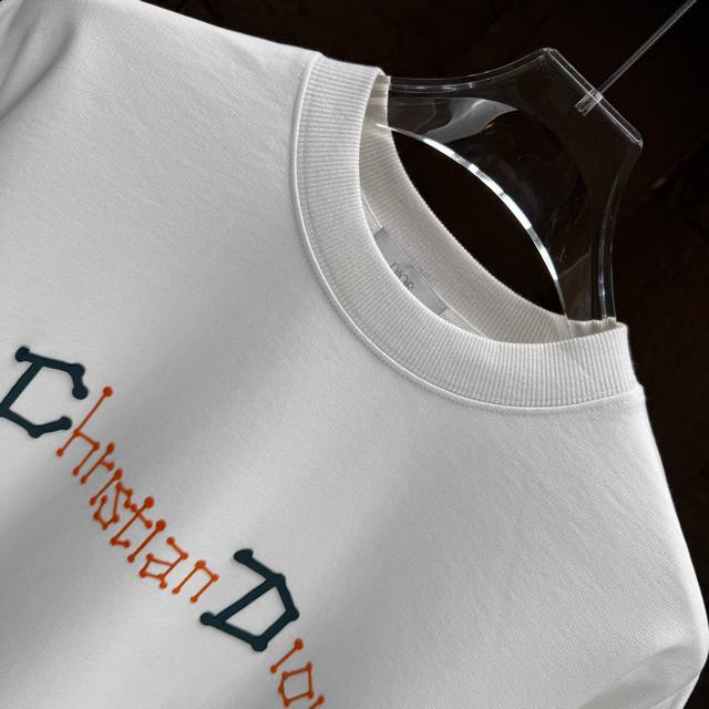 Dior 25Ss Cd toothbrush flocked letter short sleeves The fabric is made of 230g
