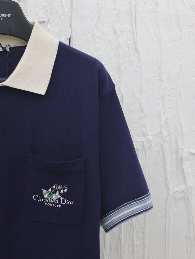Dio* Dior embroidered lily of the valley lapel knitted short sleeves