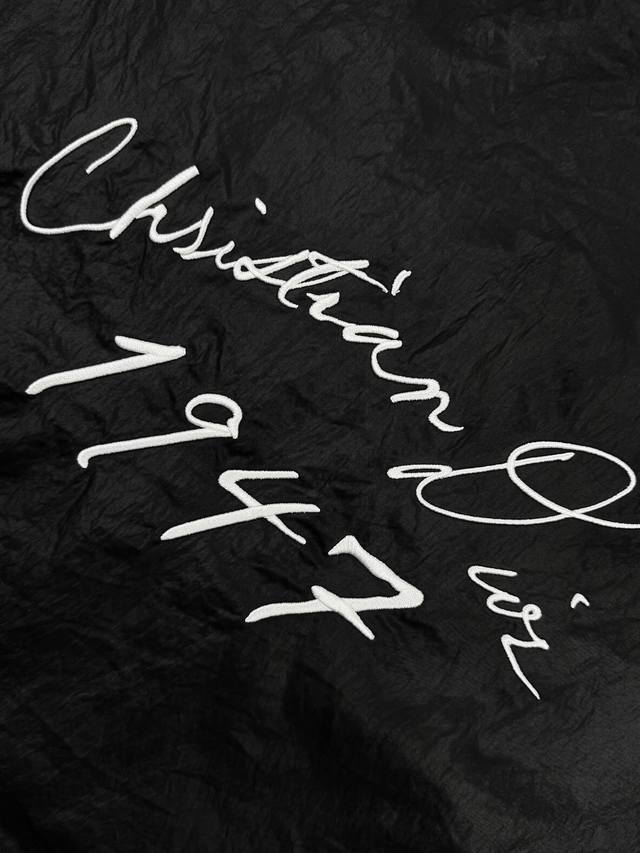 Dior 1947 Embroidered Jacket Ddd Fabric: Custom-made eco-friendly technical fabric, meticulously crafted to present unique textures and folds. Each fold is an art form, layered and textured, like futuristic technology, allowing the skin to breathe comfortably. A balance of texture and comfort against the skin. Adorned with handwritten Christian Dior embroidery showcasing Mr. Dior's signature, blending textured art with artistic tailoring, embodying French elegance and exuding pure beauty. A perfect balance between complexity and fashion. Ddd Process 1: The eco-friendly technical fabric is coated with an expensive special adhesive on its outermost layer, altering its surface structure before undergoing a fermentation process. Chemicals are used to create unique textures and folds, further enhancing its softness. Ddd Process 2: Imported machine embroidery is used, employing an advanced computer control system and precision mechanical parts to achieve the handwritten Christian Dior 1947 embroidery. The workmanship is neat and even, with strong lines and fine stitches. Ddd Accessories: Custom 1:1 Dior metal snap buttons Ddd Custom 1:1 Dior logo Ddd Custom 1:1 tie-up Ddd fit: loose fit Ddd sizes: 46 48 50 52 DDD