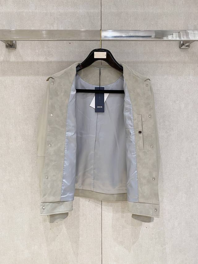 Dior 2025 Autumn/Winter New Arrival Leather Jacket, available simultaneously on the official website. Original hardware and labels included, top-quality original item, manufactured in the original factory. Custom-made fabric from the boutique, impeccable details, professional-grade quality. Soft and delicate to the touch! Casual cut, excellent fit! Color: Light Gray Sizes: M-XXL