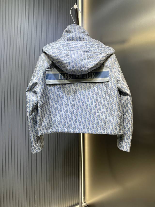 Dior 2025 Fall/Winter New Hooded Short Jacket, classic monogram jacquard fabric, drawstring hem, brand logo webbing on the back, casual and trendy, large chest pocket perfect for this season. A very stylish piece~ The fabric is very crisp, it holds its shape well without slouching . The workwear-style design is both cool and stylish, perfectly blending sporty and cool vibes~ I call it the sexiest jacket. Size: Sml