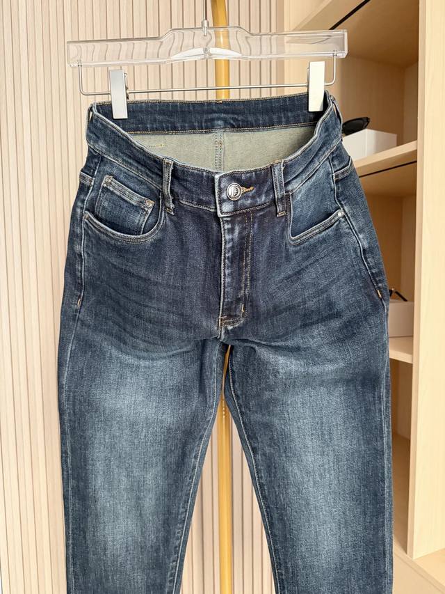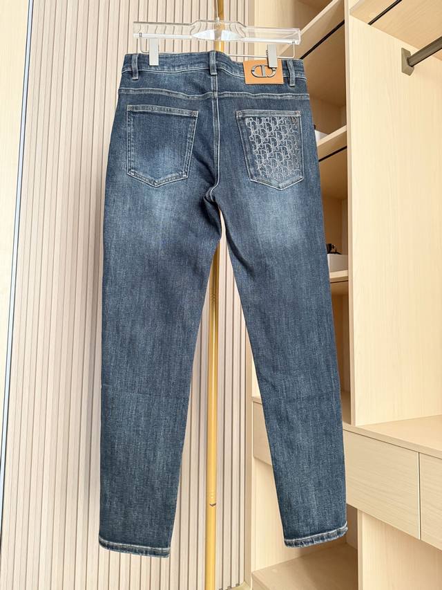 Dior - 2025 New Arrival Jeans! Made with high-end denim fabric, processed with a special washing technique, the fabric is soft, comfortable, and highly resilient, offering excellent breathability and durability. It won't easily deform or fade with long-term wear. The slim fit conforms to the leg contours, flattering the leg shape and showcasing clean lines while maintaining comfortable freedom of movement, ensuring unrestricted everyday wear. The exquisite all-over embroidery and metal logo on the back pocket highlight luxurious quality and brand recognition, subtly exuding sophistication. Metal embellishments at the waist add refined details to the overall look. Sizes: 29-38. Comes with Lane Crawford Hong Kong gift box.