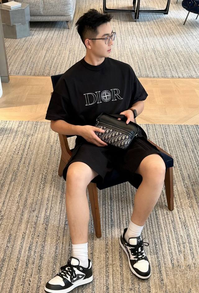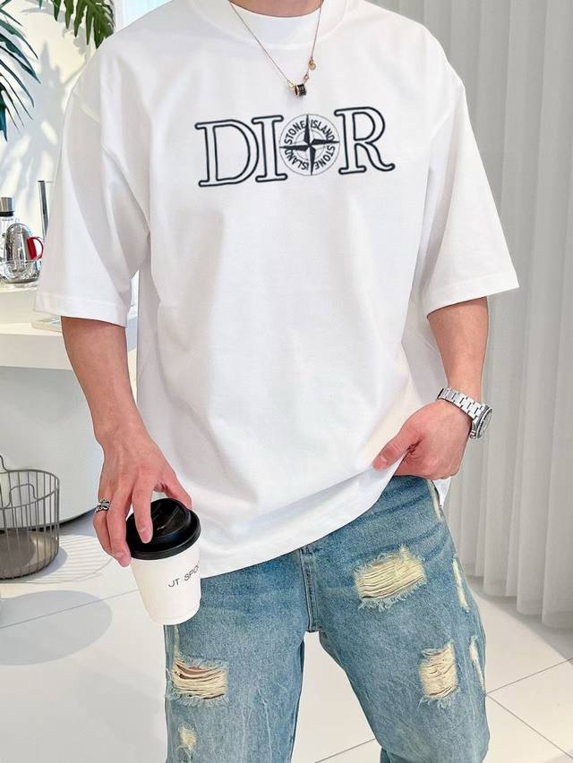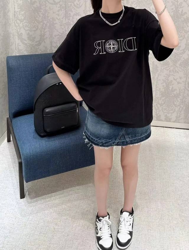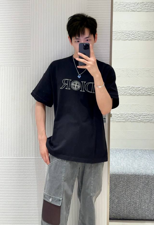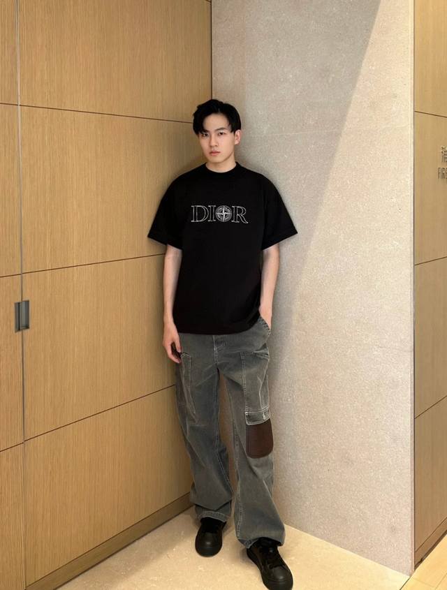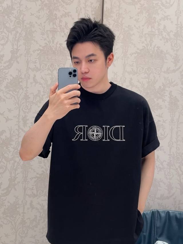 Dior 2025 SS new Stone Island co-branded embroidered short-sleeved T-shirt. This