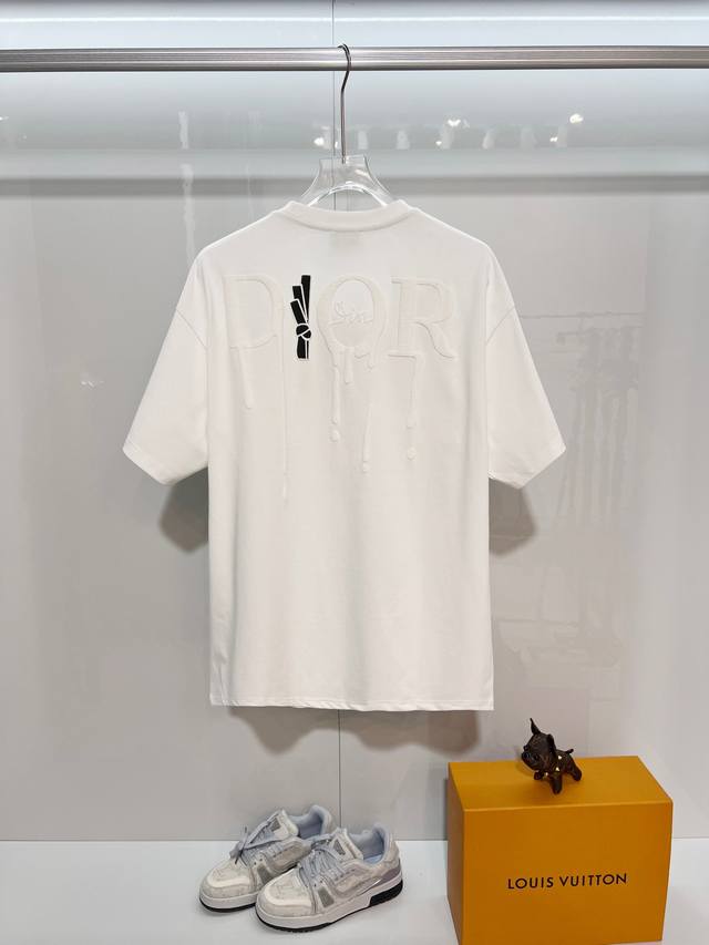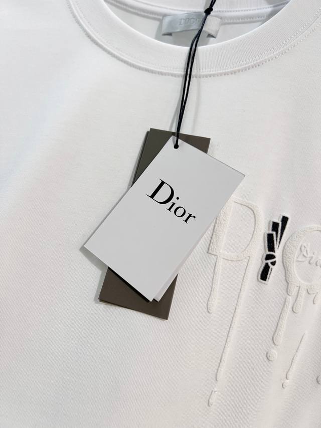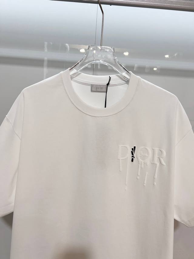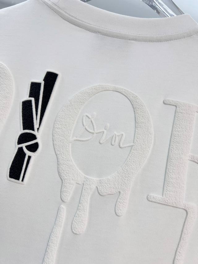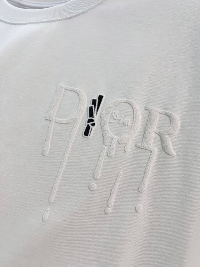 Dior 2026 New Arrival Official Website Synchronized Snowflake Embroidered Logo Unisex Short-Sleeve T-Shirt, Custom 320g 100% Double Yarn Pure Cotton Fabric, Custom Dyed 32-Count Double-Strand Ribbed Fabric, Complete with Neck Label, Hang Tag, Main Label, and All Labels, Color: White, Sizes: S, M, L, XL