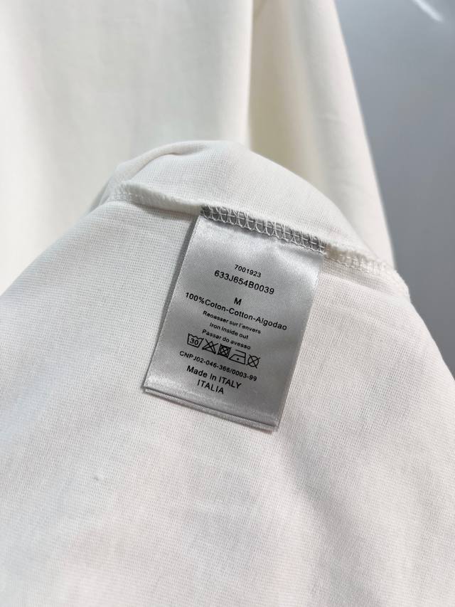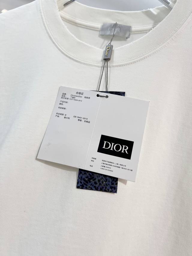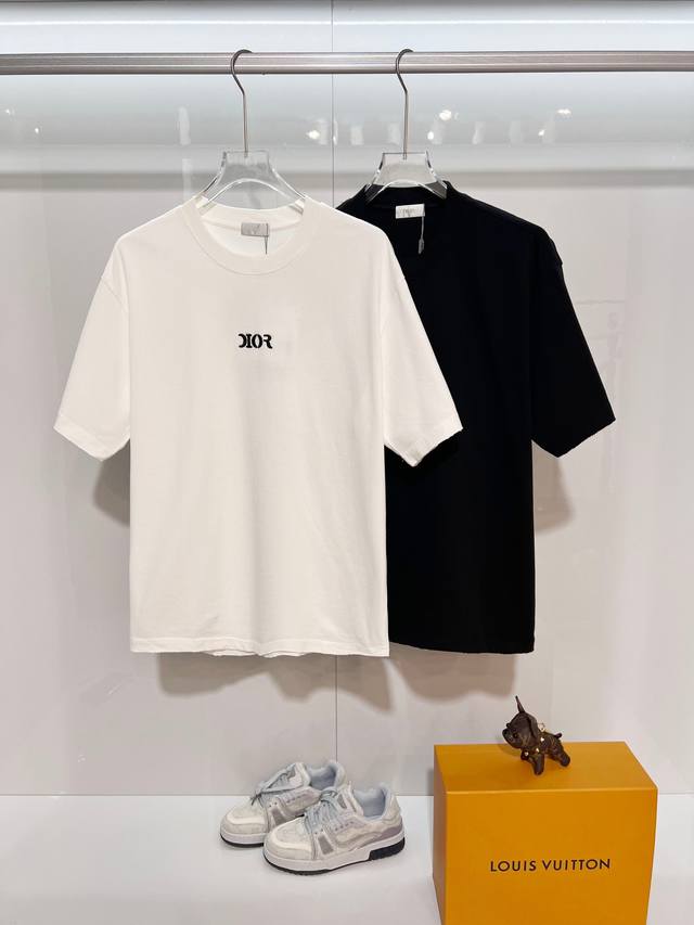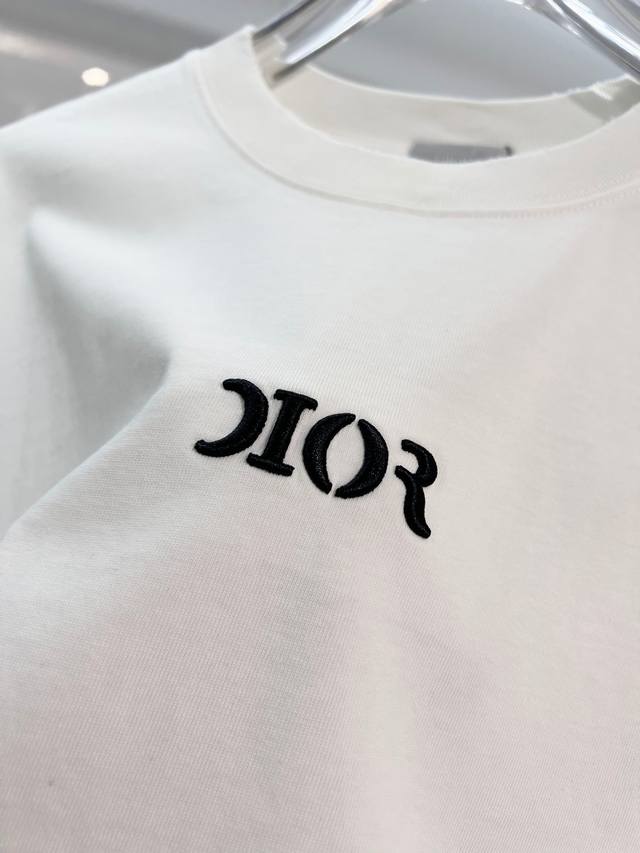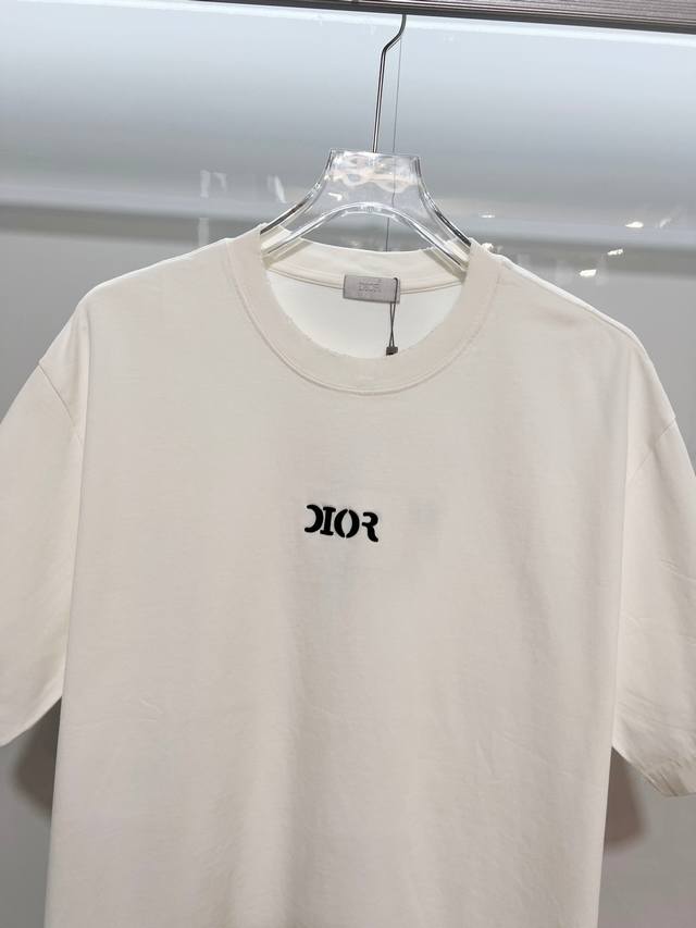 Dior 2026 New Imported High-Density Embroidered Incomplete Letter Logo Unisex Short-Sleeve T-Shirt, Custom 320g 100% Double Yarn Pure Cotton Fabric, Dyed 32-Count Double-Strand Ribbed Fabric, Complete with Neck Label, Hang Tag, and Main Label, Color: White, Sizes: S, M, L, XL