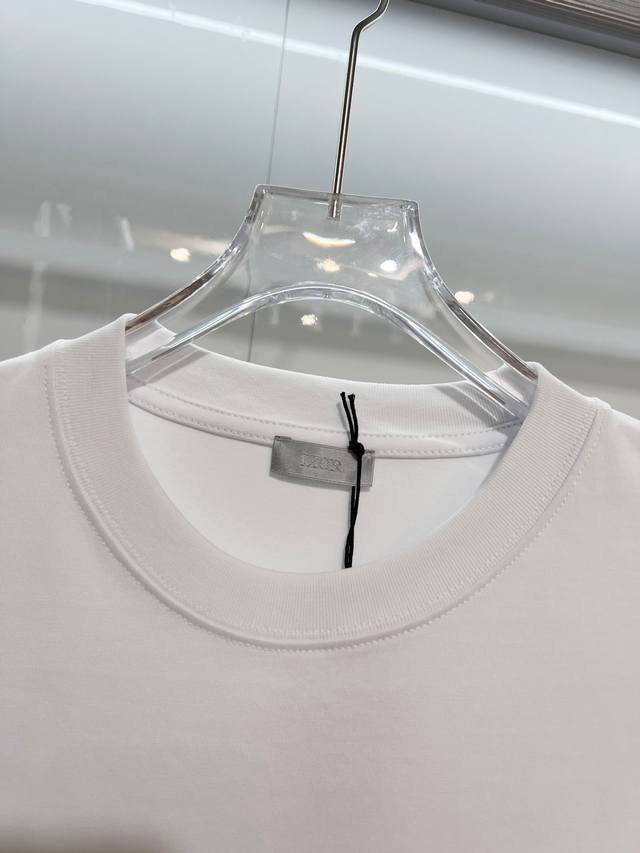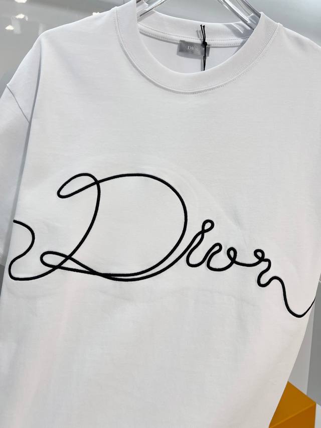 Dior 2026 New Imported Machine-Embroidered Logo Short-Sleeve T-Shirt for Men and Women. Custom-made 320g 100% Double Yarn Pure Cotton Fabric. 32-count Double-Strand Ribbed Fabric. Complete with Neck Label, Hang Tag, and Main Label. Color: White. Sizes: S, M, L, XL.