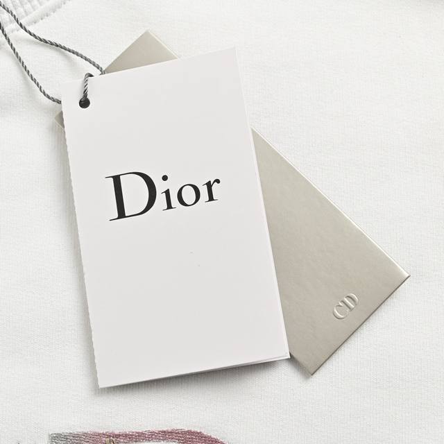 Dior 23Fw Gradient Floral Letter Embroidery Crew Neck Sweatshirt. Custom-woven and dyed fabric; custom-made triangular ribbed neckline + side ribbed fabric; imported Tajima embroidery on the chest; letter pattern base + gradient dyeing followed by partial floral embroidery; all labels, accessories, and hardware are custom-made. Size: S-XL.