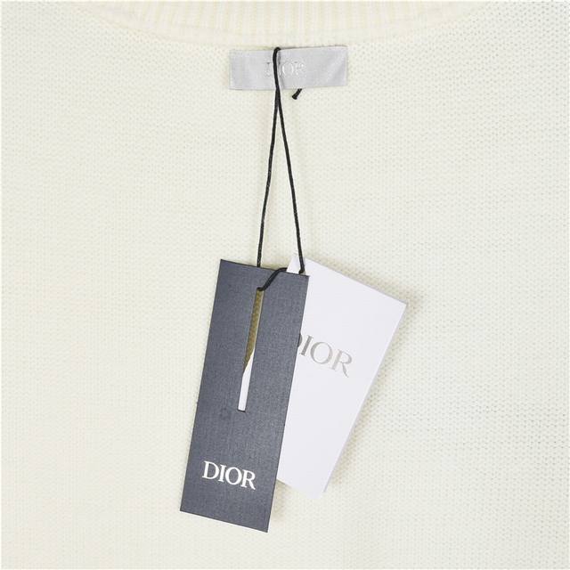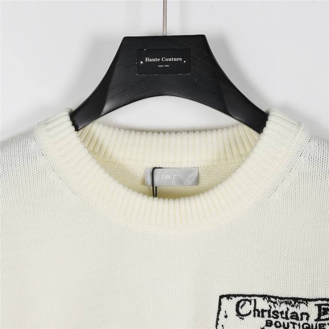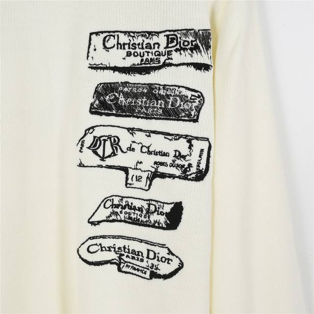 Dior 24Fw Archives Labels Embroidered Knit Pullover Sweater. This knit sweater features the Dior Archives Labels logo embroidery, a fresh interpretation of the Dior brand label. Crafted from black sheep's wool jersey, it features a ribbed crew neck, hem, and cuffs. A classic style, it offers warmth for spring looks. Features include: Dior Archives Labels embroidery on the chest; ribbed crew neck, cuffs, and hem; unisex design; slightly dropped shoulders; a premium sweater worth considering. Colors: Off-white, Black; Size: SL.