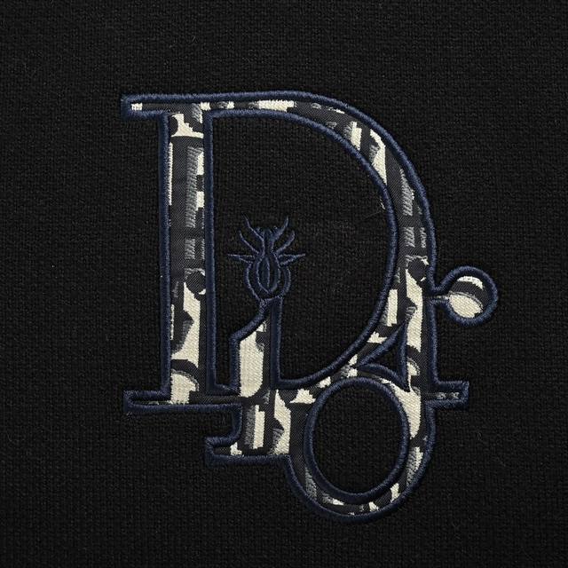 Dior 24Fw Monogram Embroidered Pattern Knit Pullover Sweater. A classic Dior item is back! This treasure sweater is a must-have for Fall/Winter this year, available now! The sweater features an embroidered logo on the chest, highlighting the brand's fashionable charm with its classic monogram pattern. Made from premium cotton yarn, the layered knitting technique creates a unique texture with evenly spaced color-blocked jacquard. The sweater is exquisite and luxurious, soft and comfortable to the touch, perfect for wearing alone or layering. The ribbed hem and sleeves are trimmed with blue piping to echo the overall color scheme. Size: SL