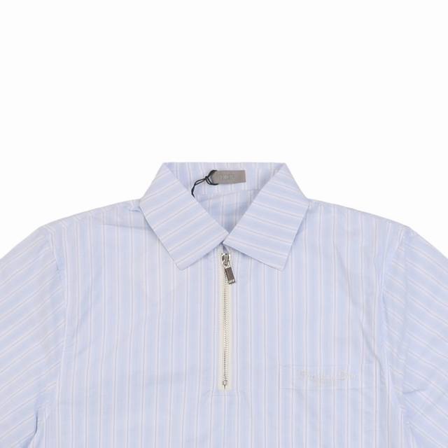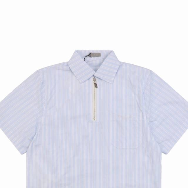 Dior 24Ss vertical striped half-zip short-sleeved shirt