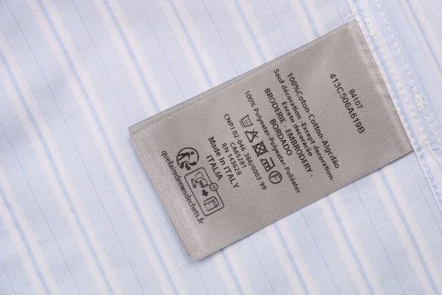 Reinterpreting the classic silhouette, highlighting the sporty style, made of white striped cotton poplin and Oblique printed cotton jacquard fabrics, carefully crafted with drawstring bottom hem, two-material tailoring, Christian D*** Couture print on the front, oversized version, can be matched with various sportswear, made of custom light blue cotton blend fabric, classic striped design, metal handle zipper closure details, single patch pocket on the chest, drawstring details on the hem, molded metal lettering hardware accessories